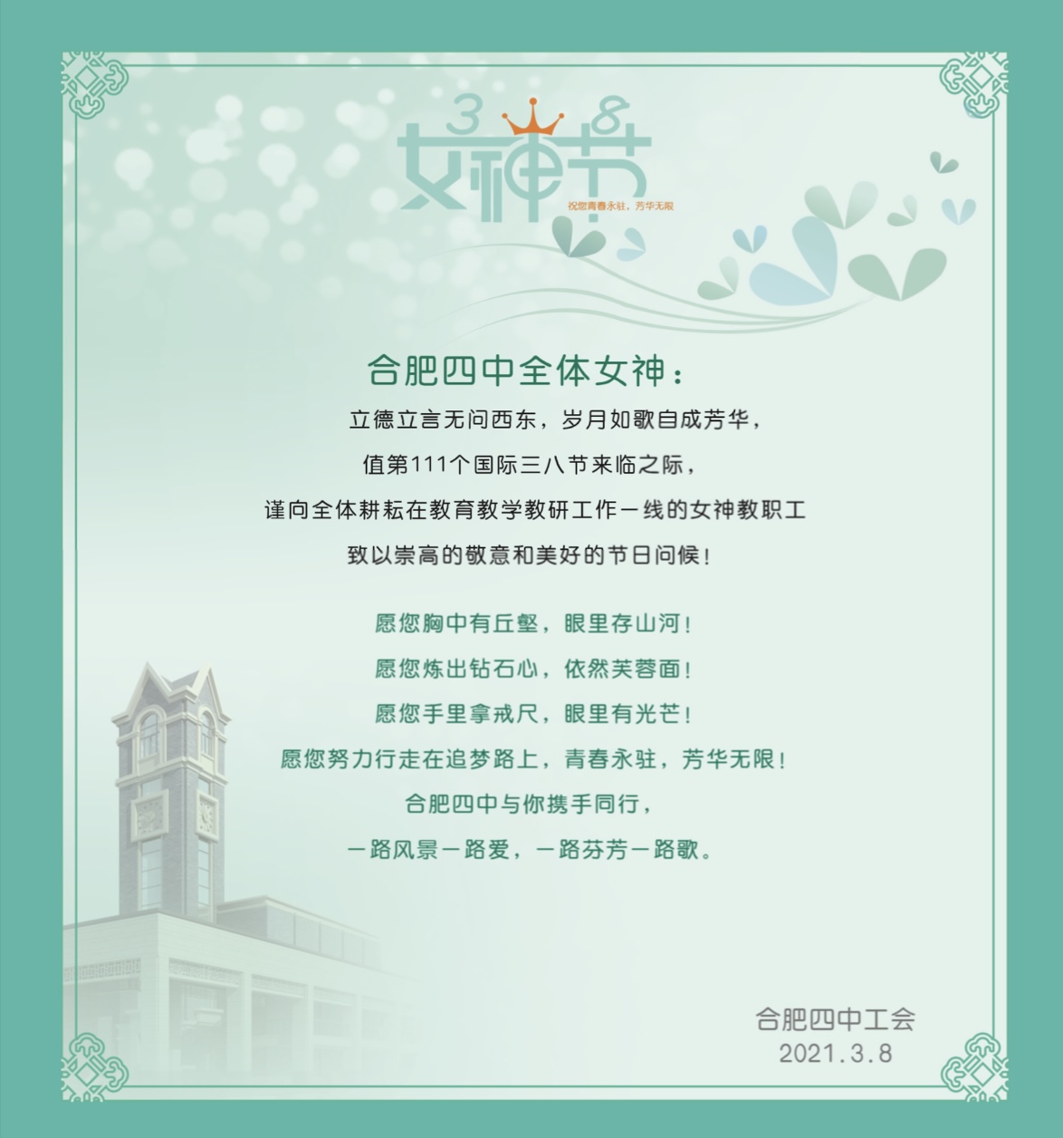 幸福家园丨合肥四中举行庆祝“三八”国际妇女节系列活动!