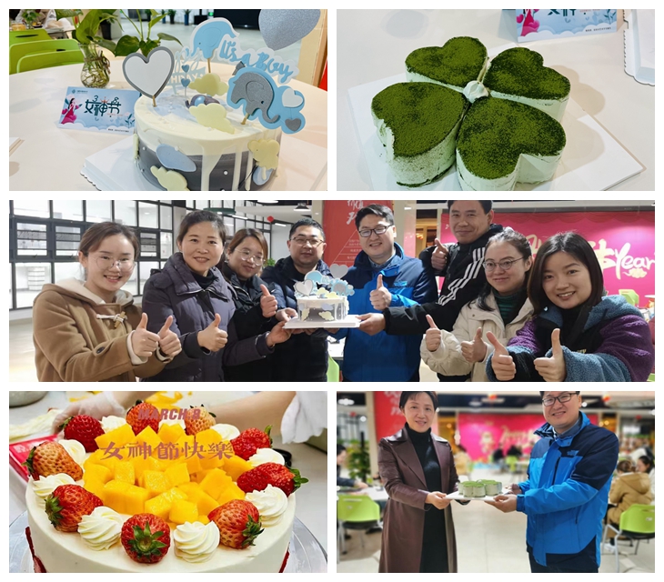 女教职工们将自己精心制作的蛋挞、蛋糕与其他同仁共同品尝、分享,现场沉浸在一片欢声笑语中。除此之外,合肥四中工会还精心地为每位女教职工准备了一份带有四中元素的小蛋糕,向广大女教职工们致以节日的问候。合肥四中校长吴英明则将象征幸运的四叶草蛋糕赠送给高三年级部主任许超,期望高三年级部的巾帼英雄们能够幸运幸福、创造辉煌!