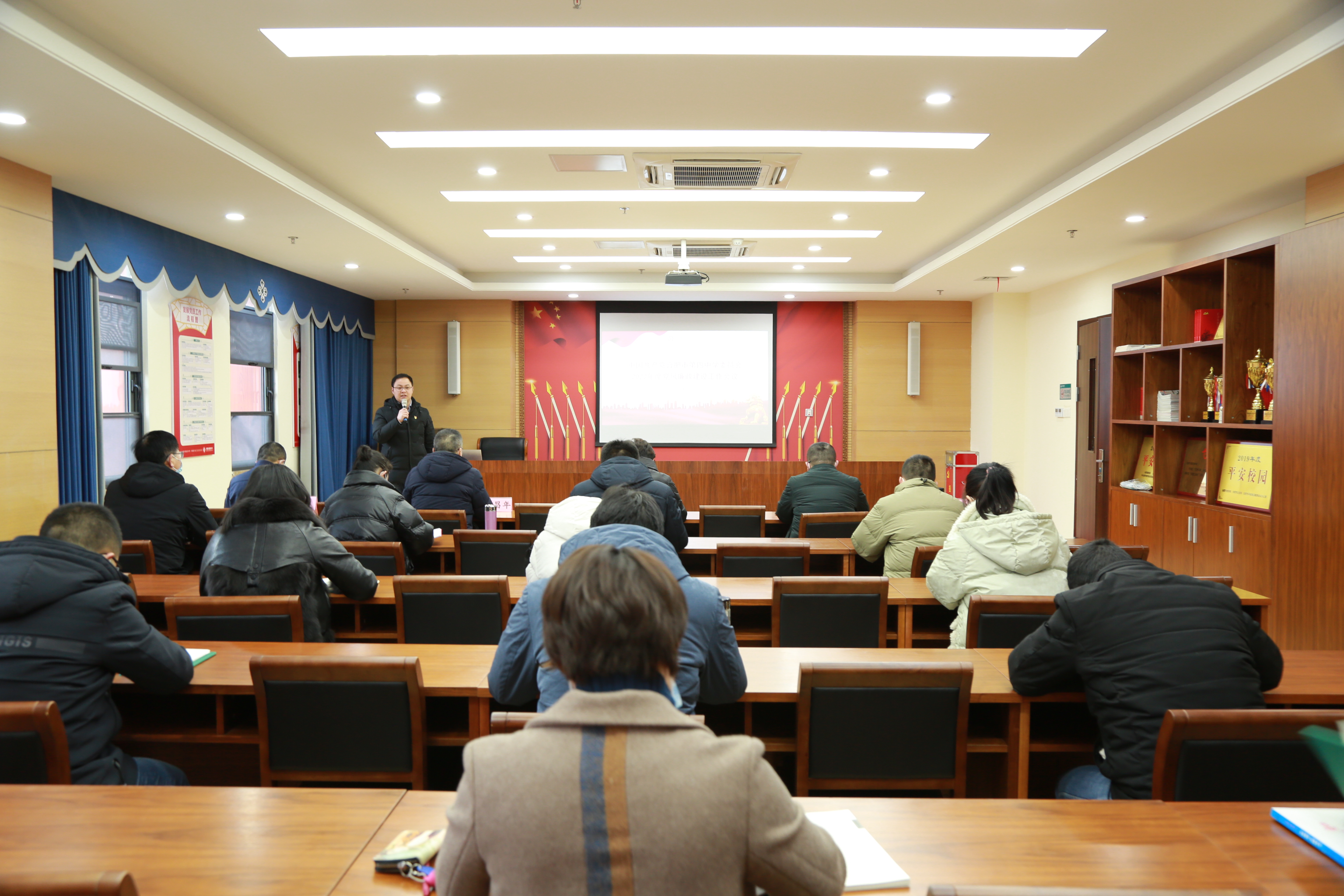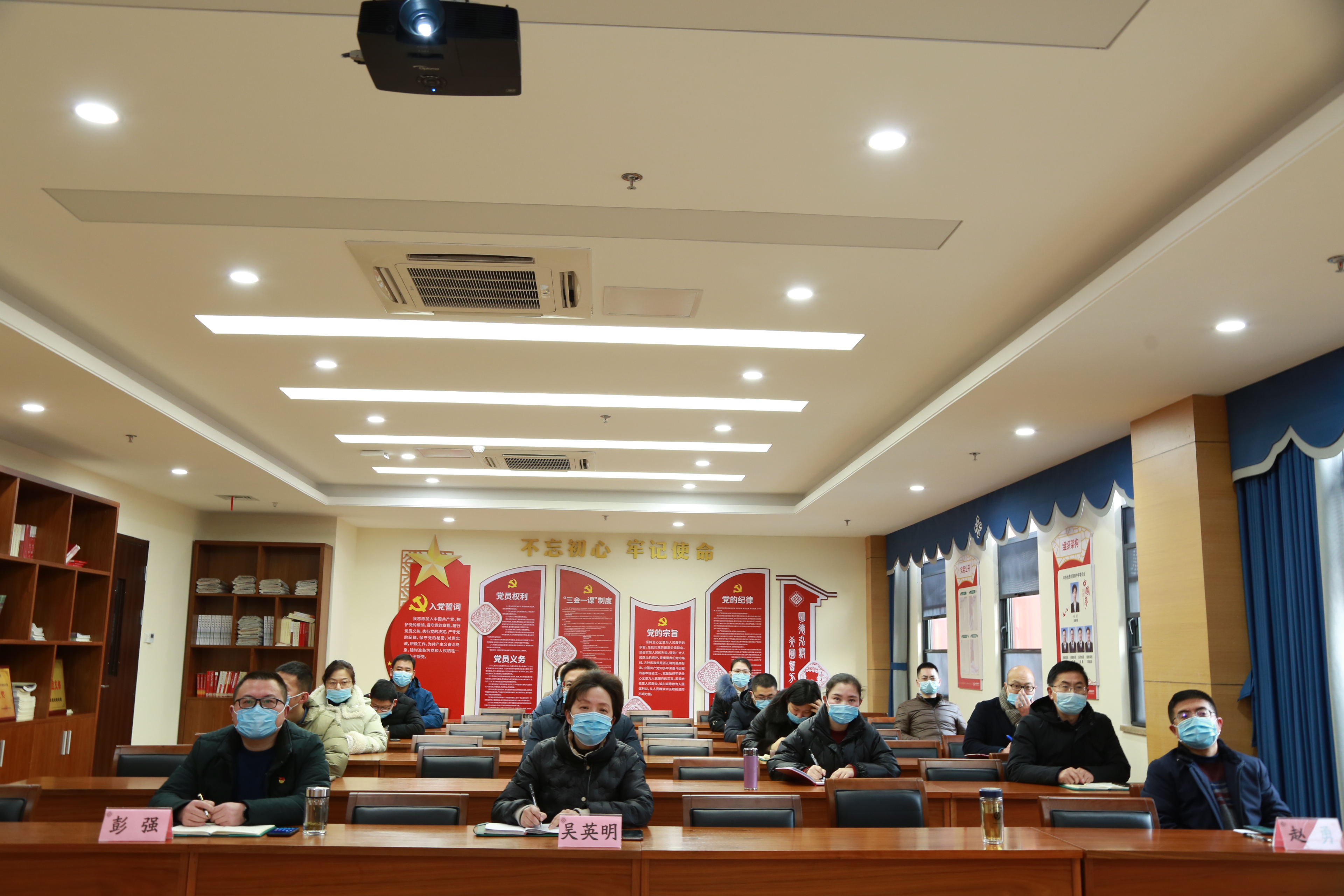 2022年2月21日下午,合肥四中党委2022年度党风廉政建设工作会议在学校景贤书院五楼党员活动室召开。合肥四中党委书记吴英明,党委委员李昌年、彭强、赵勇、裴启超以及各支部支委、部分中层干部参加会议。会议由党委委员、办公室主任裴启超主持。
