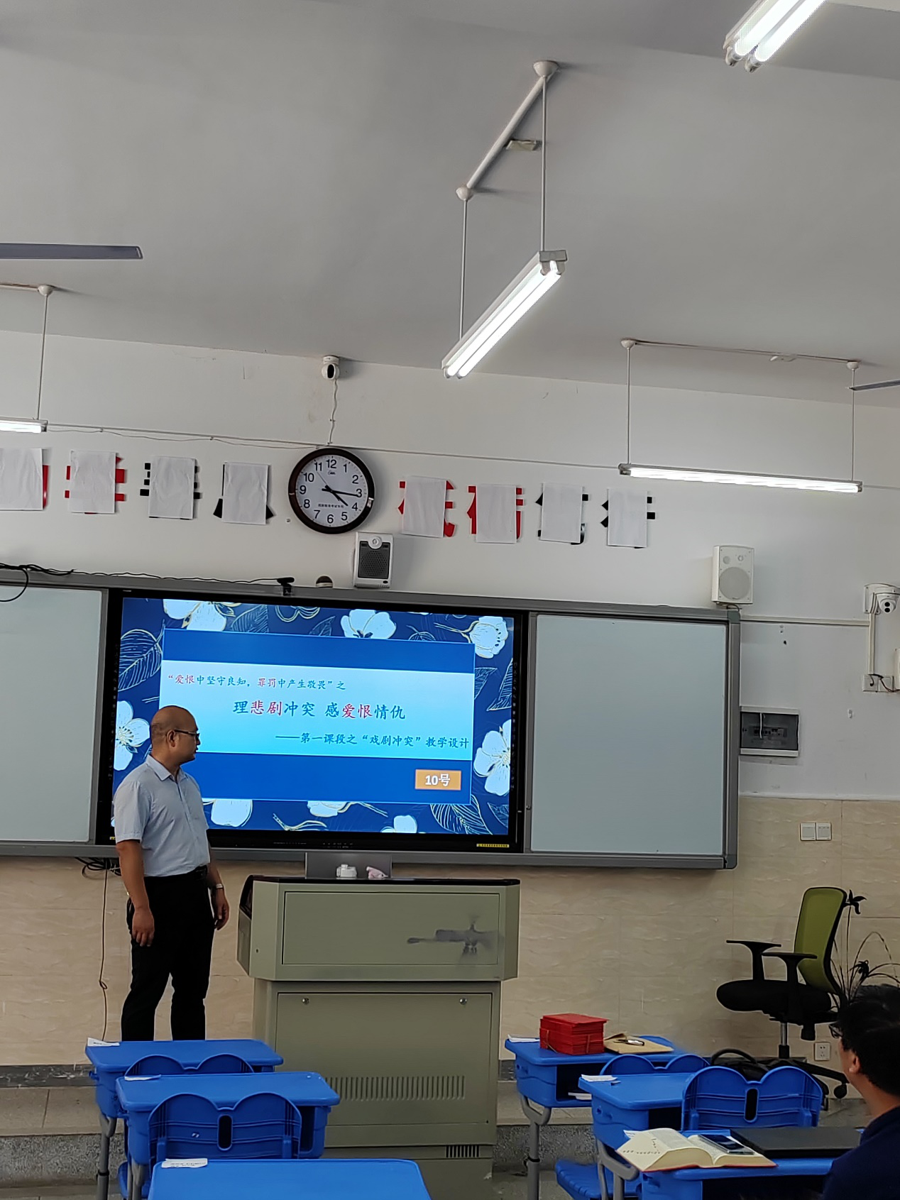 最后是成果展示,7月1日下午,经过前期紧锣密鼓的准备,张凌华老师的示范课终于出炉。张老师选用了古今中外经典悲剧名作,分别是《窦娥冤》的第三折《雷雨》的第2幕以及《哈姆雷特》第3幕第1场。三部跨越时代的作品,表现了不同时代,不同民族的剧作家们对于社会现实的理解与关照,以及对于人性的关怀与守望,而我们的教材所选用的部分正好是剧作当中揭示冲突,刻画形象以及深化主题的关键部分。