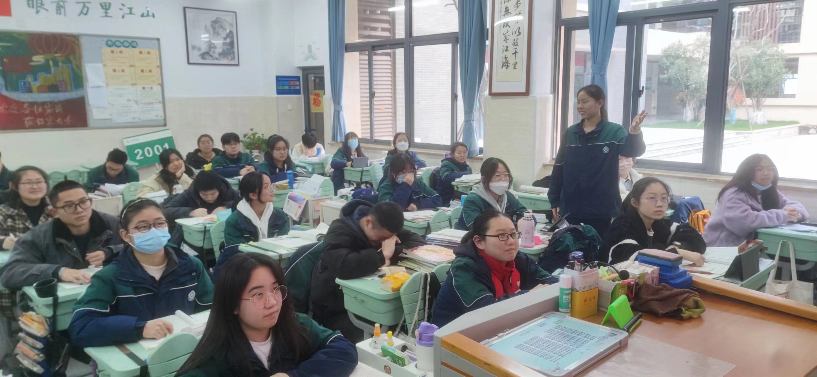 接下来,2001班班主任吴瑾瑜带领全班同学深入学习了习近平总书记在2023年全国两会期间的重要讲话。吴瑾瑜老师指出,今年是全面贯彻落实党的二十大精神的开局之年,全国两会的顺利召开,为全国上下奋进新征程增添了信心和力量,我们要切实将学习全国两会精神与贯彻落实党的二十大精神紧密结合,同学们要把两会成果落实好,把两会精神诠释好,以学习全国两会精神为思想指引,增强责任感和使命感,进一步激发爱党爱国热情,精神饱满地投入到中华民族伟大复习的历史伟业中!