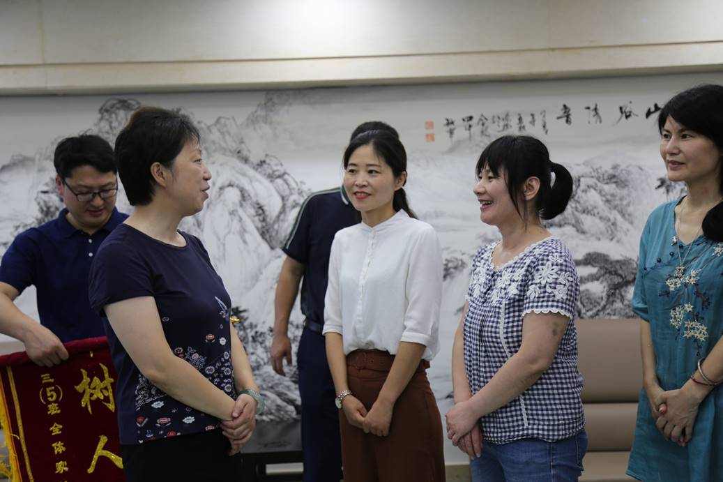 接下来家长又把绣着“桃李满天下,雨露润春华”的锦旗送到年级部。许主任代表年级部接受了锦旗,许主任表示,我校优秀的教师团队得到家长的认可,为老师赠送鲜花和锦旗,体现出家长们尊师重教的情怀。身为年级部负责人,十分地自豪和感动,这份荣誉既是对老师们的肯定,也是对优秀教师团队的鞭策。同时也对家长们一直以来的支持与配合表示感谢,正是因为家长们的支持,教师们才更有精力工作,更有力量发展。