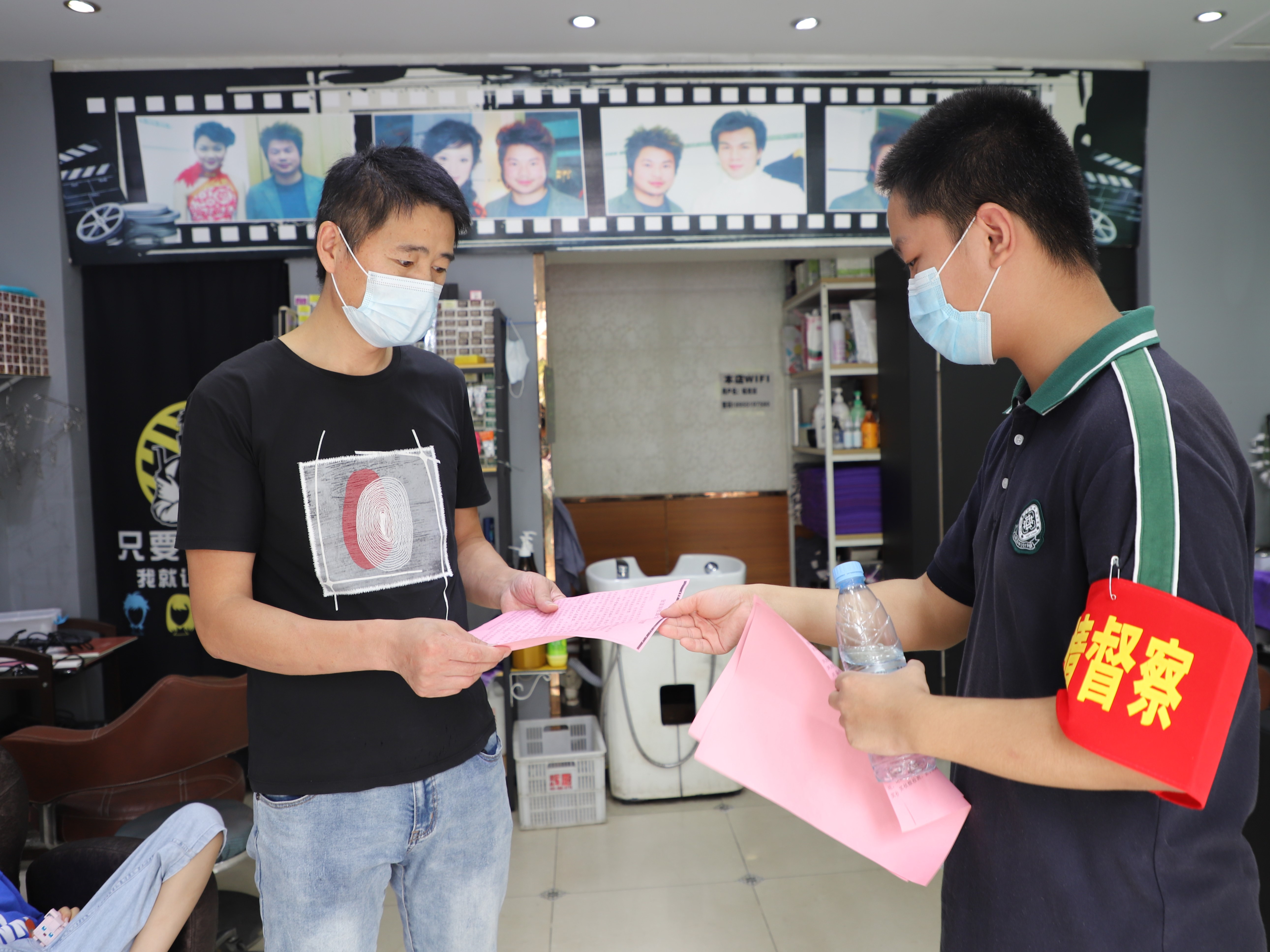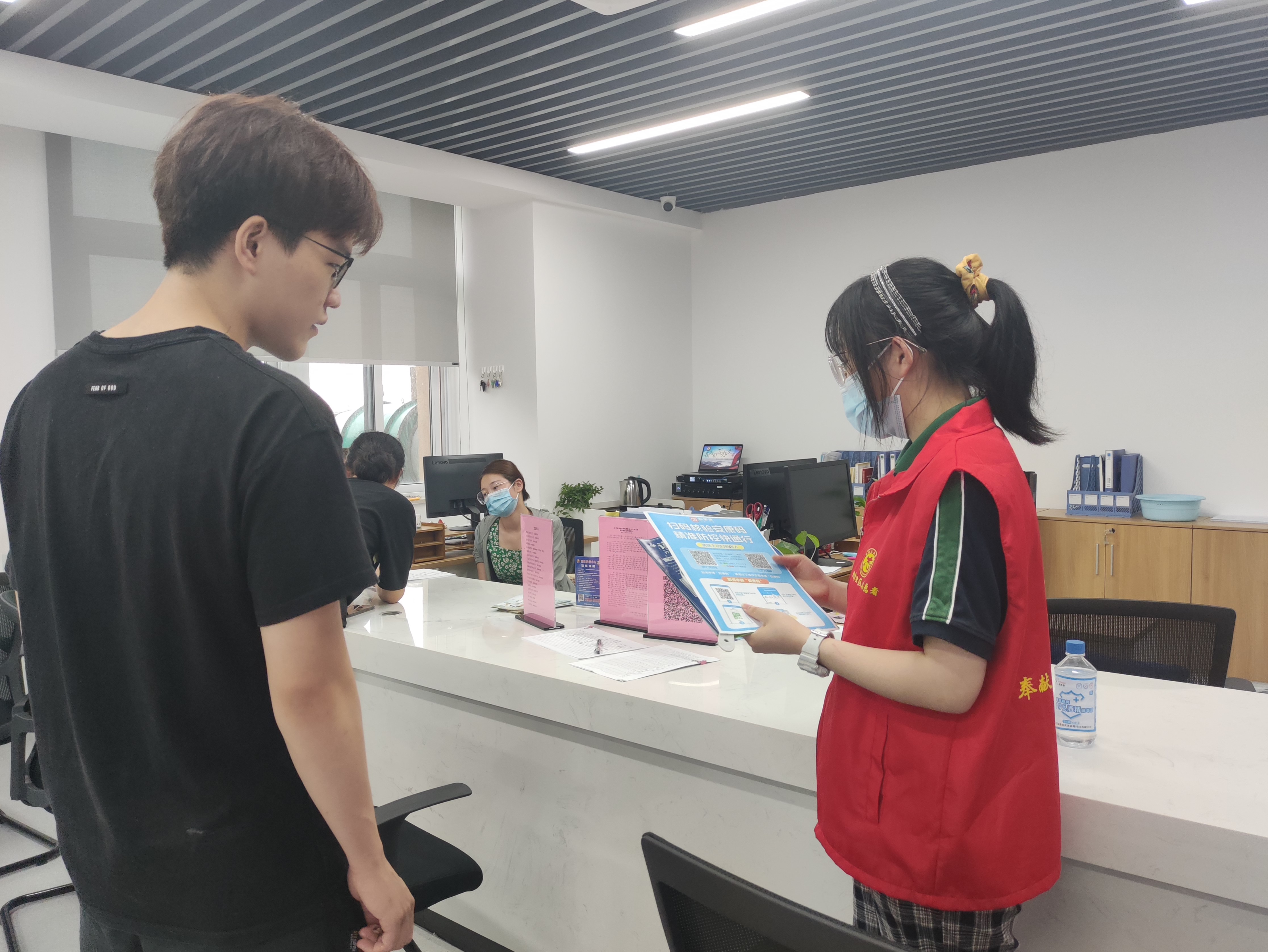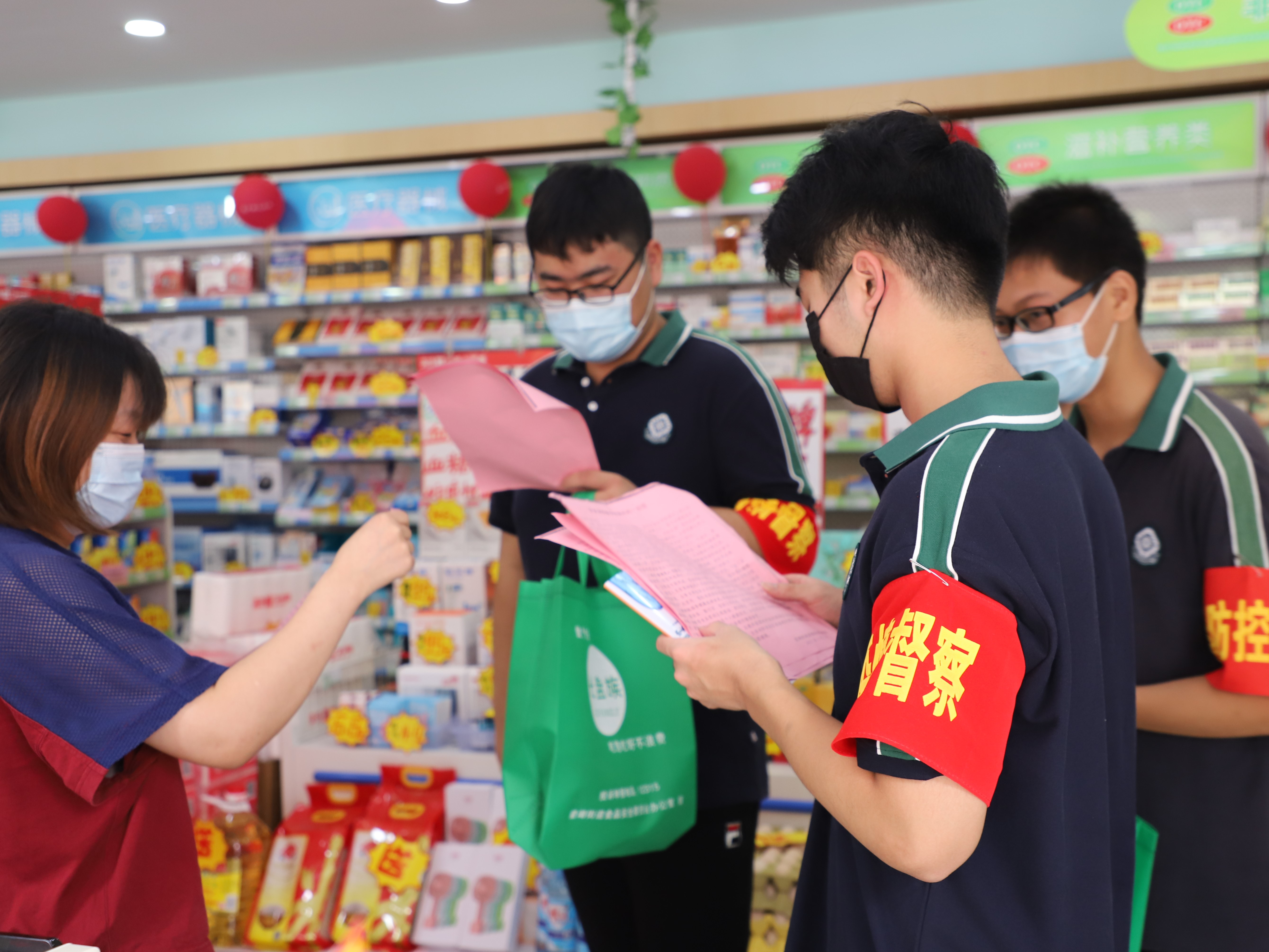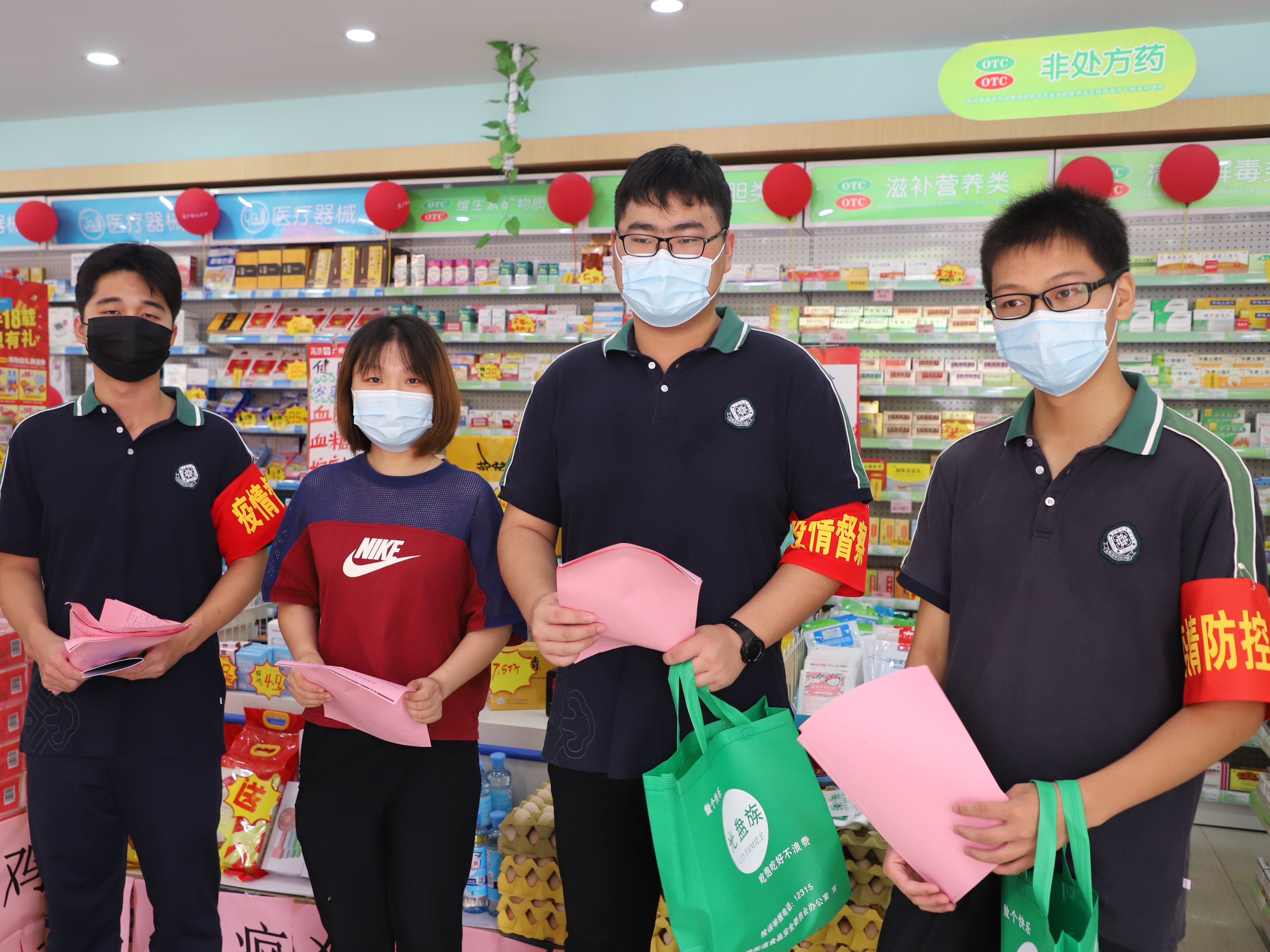 在王卫社区的志愿服务活动中,同学们一方面前往附近的加侨广场,对其中的餐饮商家进行光盘行动的相关宣传,并赠送光盘行动立牌;另一方面则深入周边居民区,向社区居民开展疫情防控相关宣传,并协助社区工作人员张贴疫情防控海报等。