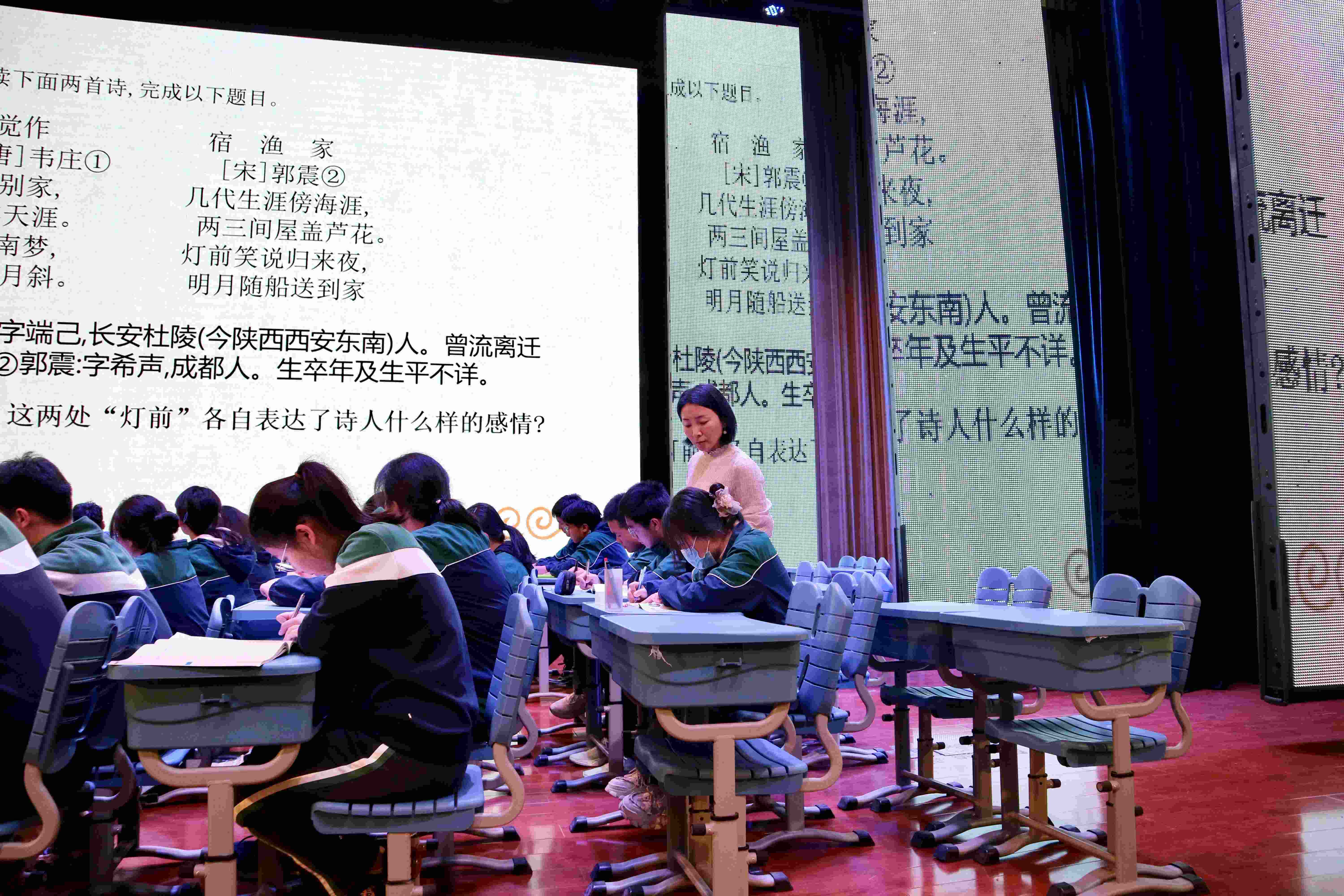 2023年4月11日下午,由合肥市教育科学研究院主办、合肥四中承办的全市高三语文二轮复习研讨会在合肥四中中和会堂举行,合肥四中2020级高三语文组全体教师参加活动,高三语文教研组组长张春梅并受邀为与会教师进行“古代诗歌阅读”专题公开课教学。