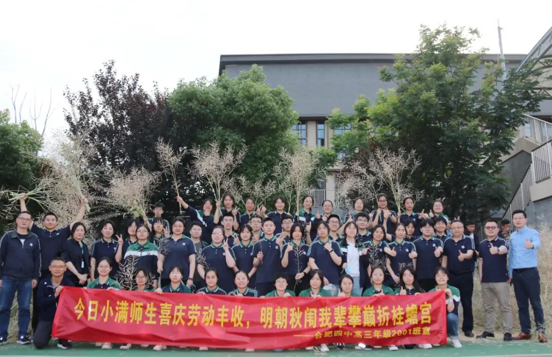 2023年5月23日下午,合肥四中劳动教育系列课程之“收割油菜”活动在校内劳动教育园地顺利举行。在班主任吴瑾瑜的带领下,合肥四中2001班集体参加劳动。合肥四中校长吴英明,副校长李昌年、彭强,总务处主任程家飞,高三年级部主任蒋浩,年级部副主任何飞、项林等到场指导。