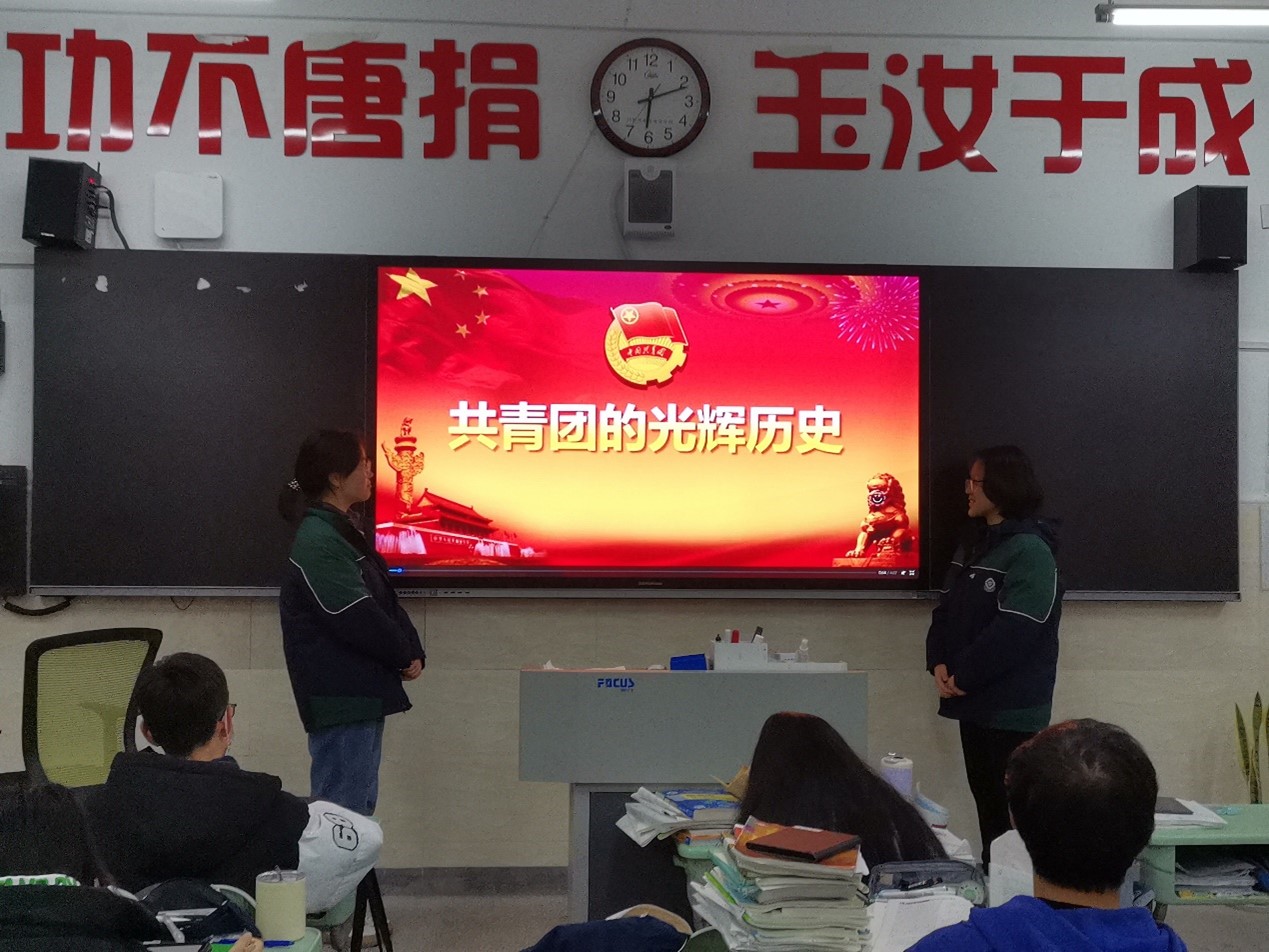 首先由团支书吕杨阳同学以视频的形式为大家生动展现了中国共青团的百年征程、充分体现了中国共产党的后备军这一定位,深化了同学们对中国共青团的理解。