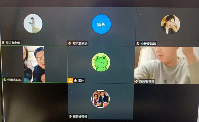 学校教育离不开家校合作。部分家长对线上教学有种种担忧。为帮助家长稳定情绪、调整心态,与学生共克难关,项林老师以分组微型家长会的形式交代相关事宜,与家长达成共识。家长积极配合学校线上教育教学活动,做好监督监管和后勤保障工作。