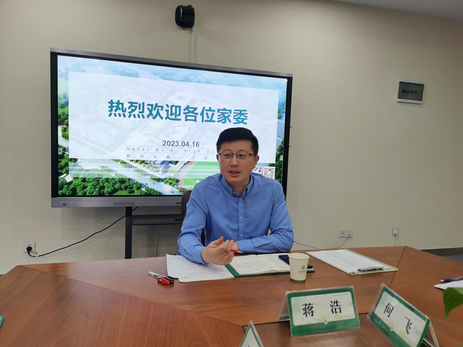2023年4月16日下午,合肥四中2020级年级部在级部会议室召开高三年级家委会代表会议,高三年级部主任蒋浩,副主任何飞、项林参加会议。