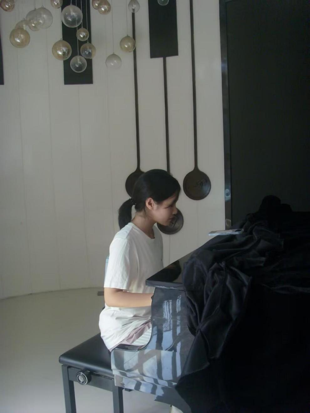 钢琴前,我们华丽演绎,弹奏高山流水,修长的手指悬在象牙白的琴键上方,像白鹤即将掠过月光下的湖泊。突然落下的食指按响中央C,音符在黄昏的琴房里荡开一圈金色涟漪。琴凳上的少女微微前倾,脊椎弯成一道优雅的弧线。随着《月光》前奏流淌而出,她的肩膀开始跟随旋律轻轻起伏,后颈碎发在空调风中微微颤动。低音区轰鸣时,左脚无声地踩下延音踏板,裙摆与麂皮鞋面之间露出一截纤细的脚踝。我们在四中贯彻“唯阅读、运动与艺术不可辜负”的理念。
