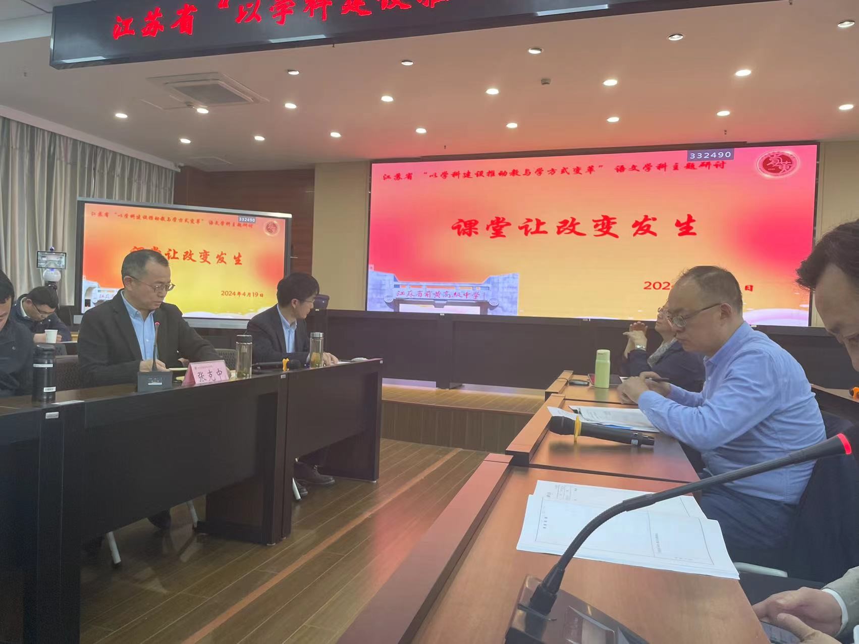 随后各学科与会教师进行共同教研活动,交流各自学校在学科建设方面的经验。在语文分会场中,江苏省中小学教研室中学语文教研员张克中表示随着双新落地,教育教学既要坚守育人初心,也要注重社会发展多样化,他对合肥四中许璐琳老师分享的智慧课堂建设经验表示肯定,并强调在数字化资源、课程内容更新以及教学方法改革等方面,更需要各学校、各地积极构建一个开放、共享、互动的教育生态。