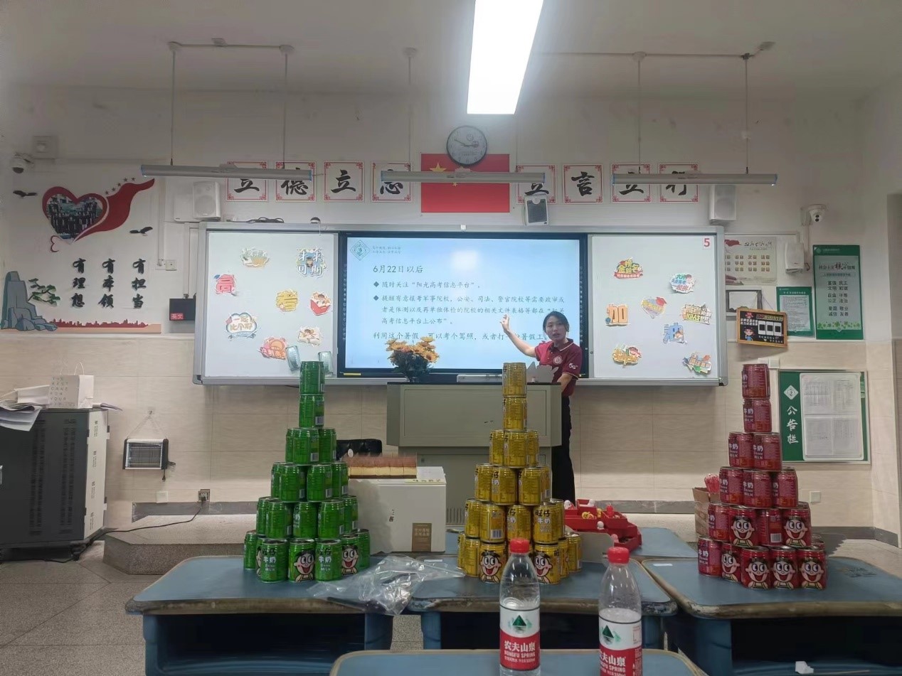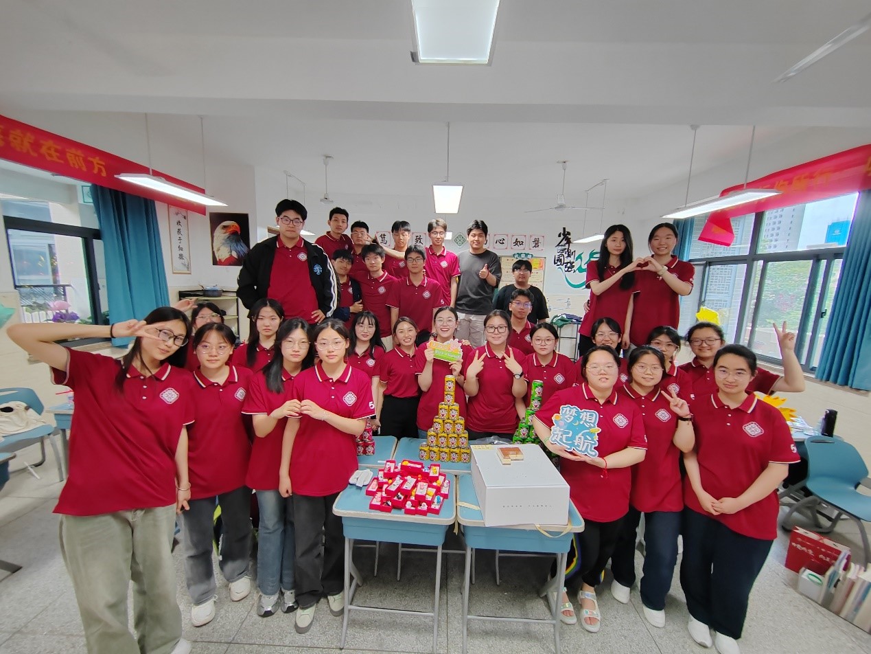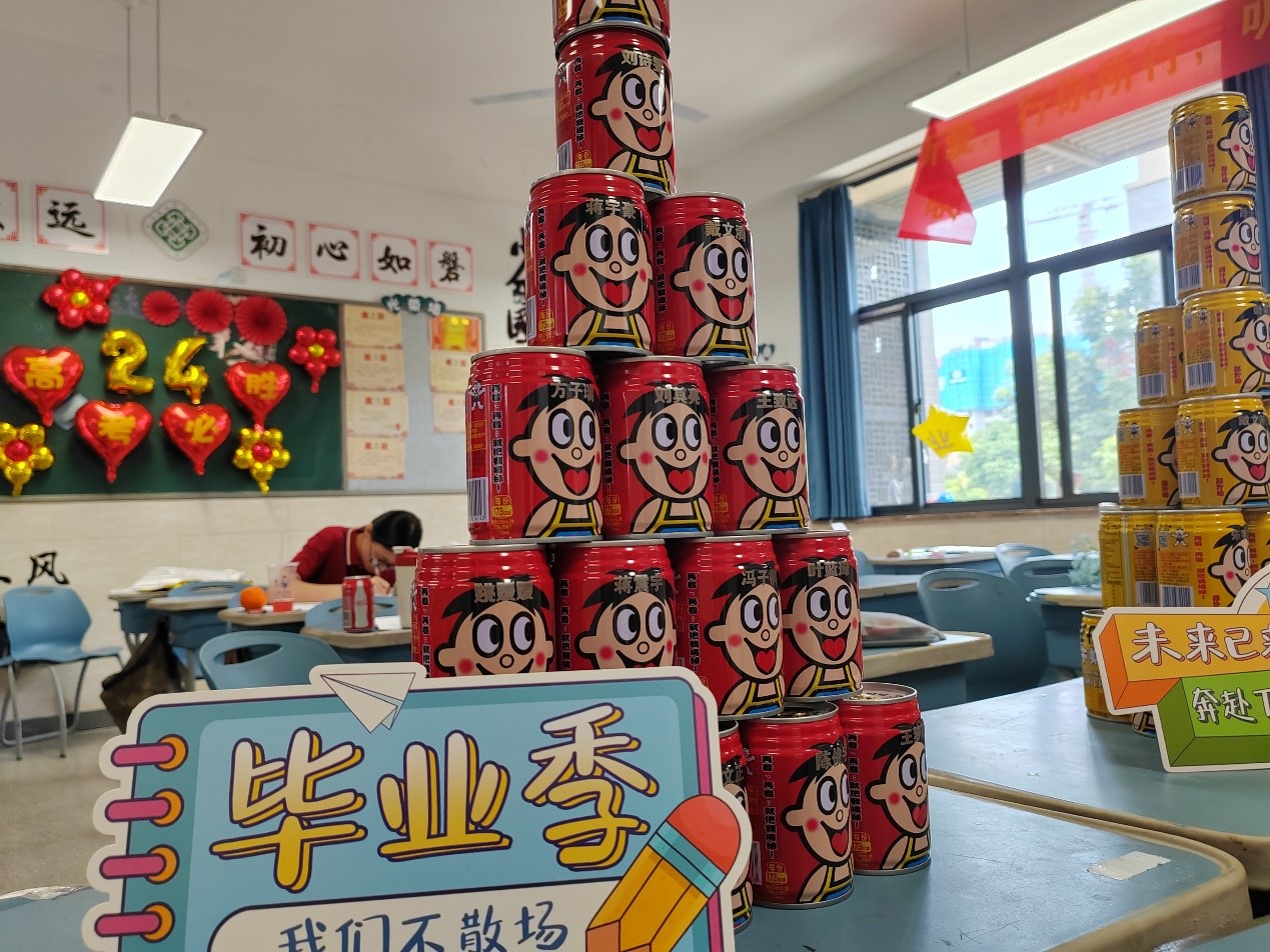 在班会课的最后,同学们一起分享了美味的蛋糕和奶茶,庆祝他们即将毕业的美好时刻。同时,班主任还为每位同学准备了一份特别的伴手礼——红色旺仔、橙色旺仔、绿色旺仔以及刻有他们姓名的128G U盘。这些伴手礼不仅寓意着同学们未来的生活将充满色彩与希望,更是他们高中生涯的珍贵回忆。