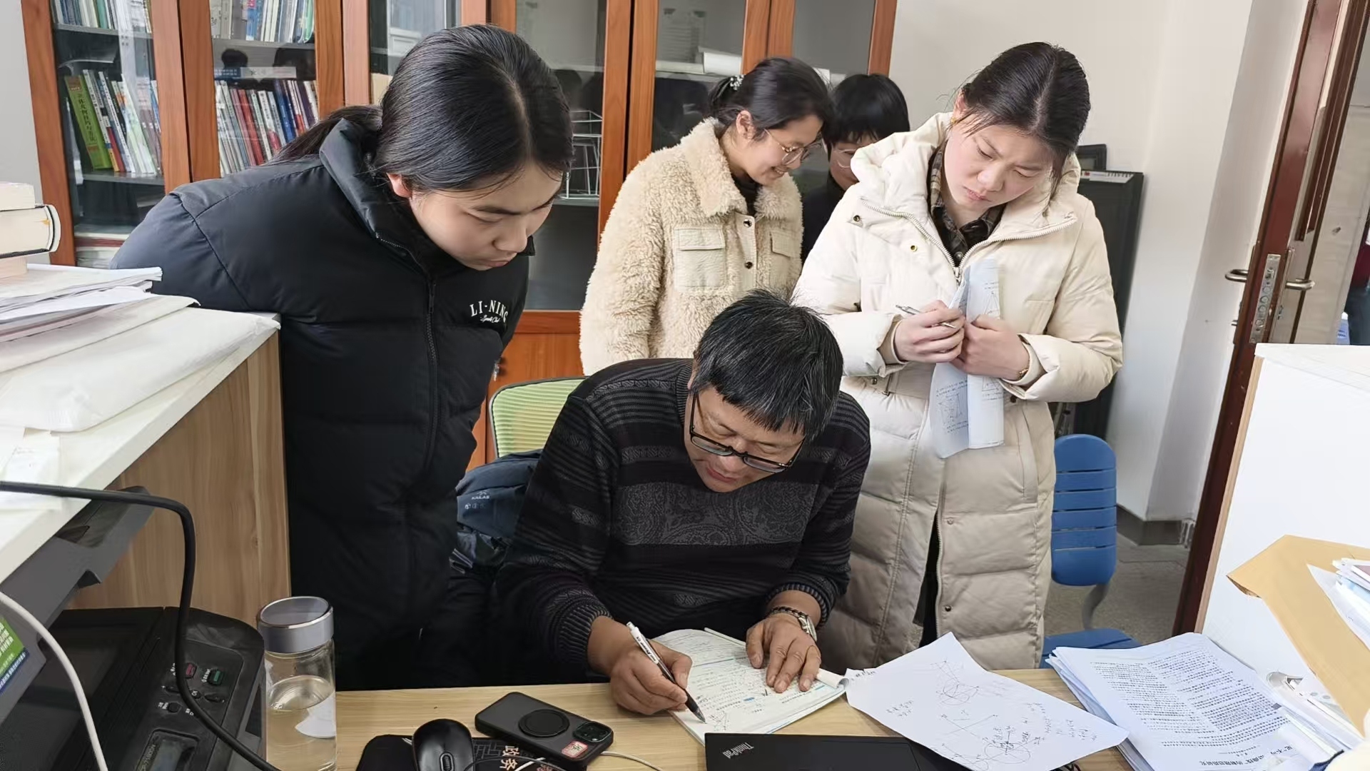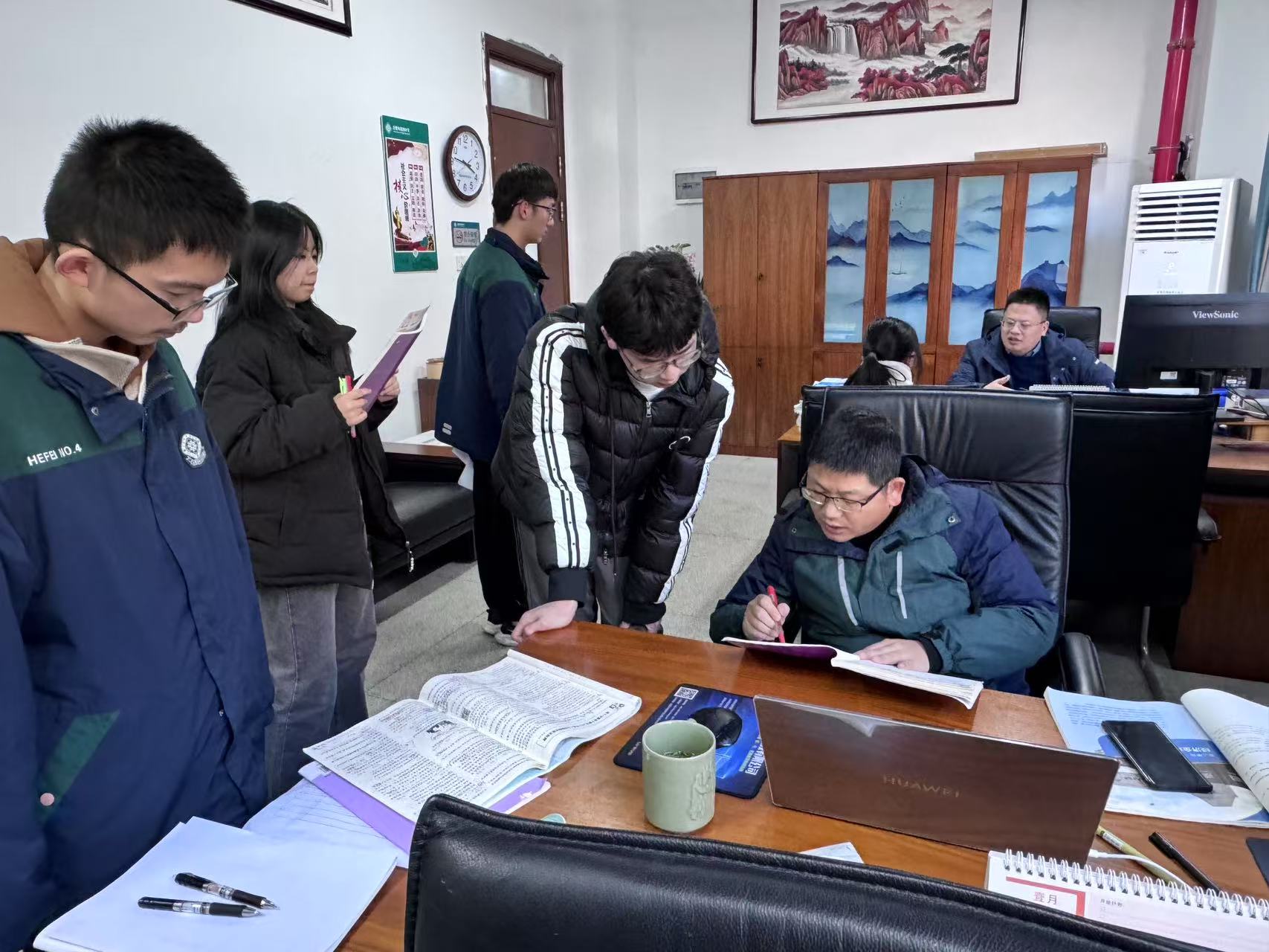 办公室里,高三教师的办公桌上堆满了试卷和备课资料。他们或伏案批改作业,用红笔细致标注共性错题;或辅导学生,耐心解答疑惑,由于学生们太多,经常被围得密不透风。针对每个班级的临界生,班主任学科老师们实施“对点帮扶”,通过定期交谈,了解学习动态。