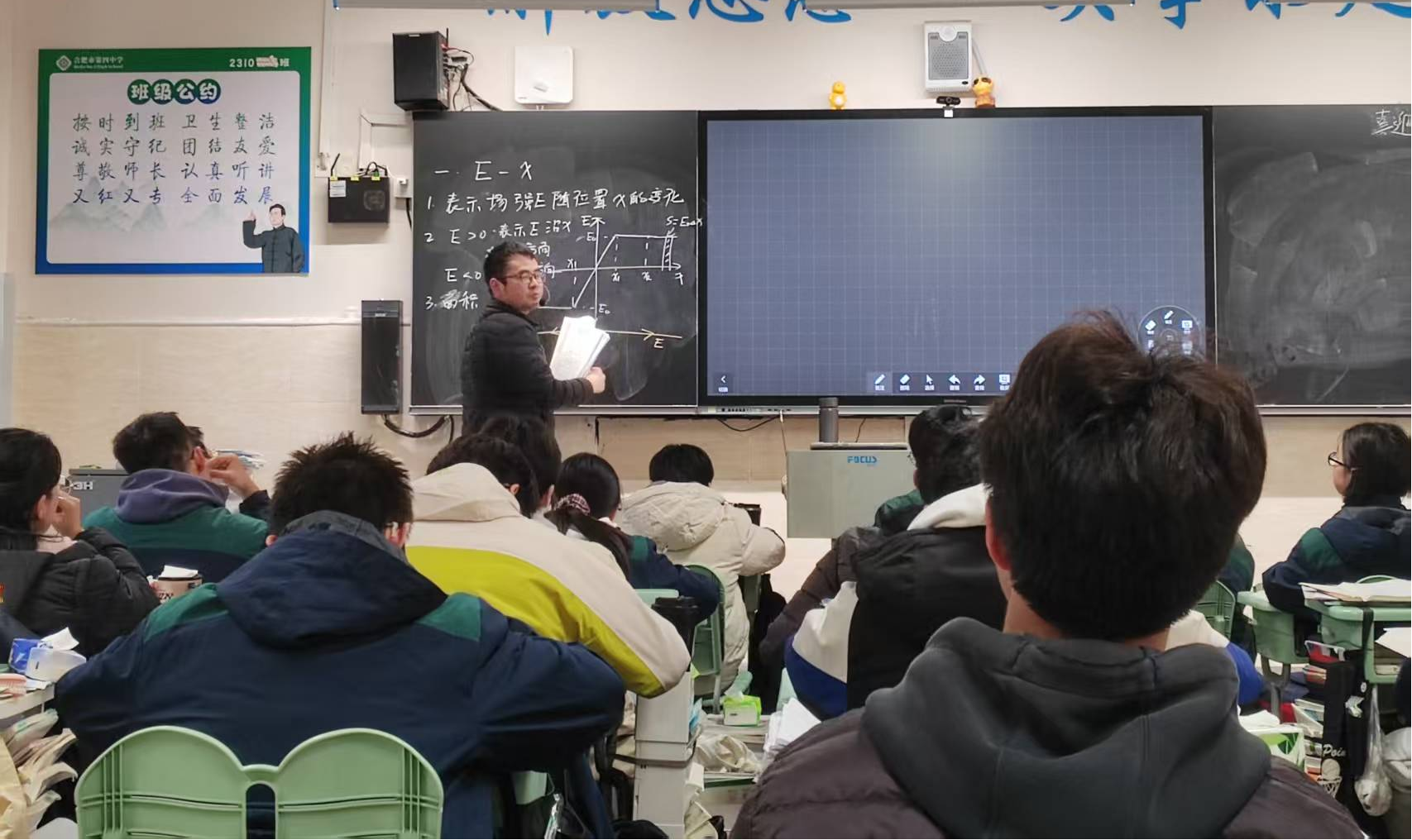 葛礼丰老师的课程内容为电场中的图像问题。从图像的横纵坐标的含义到方向的规定,再结合具体实例,详细梳理了E-X和图像的意义,由浅入深。大部分学生听的也非常认真,积极回应。