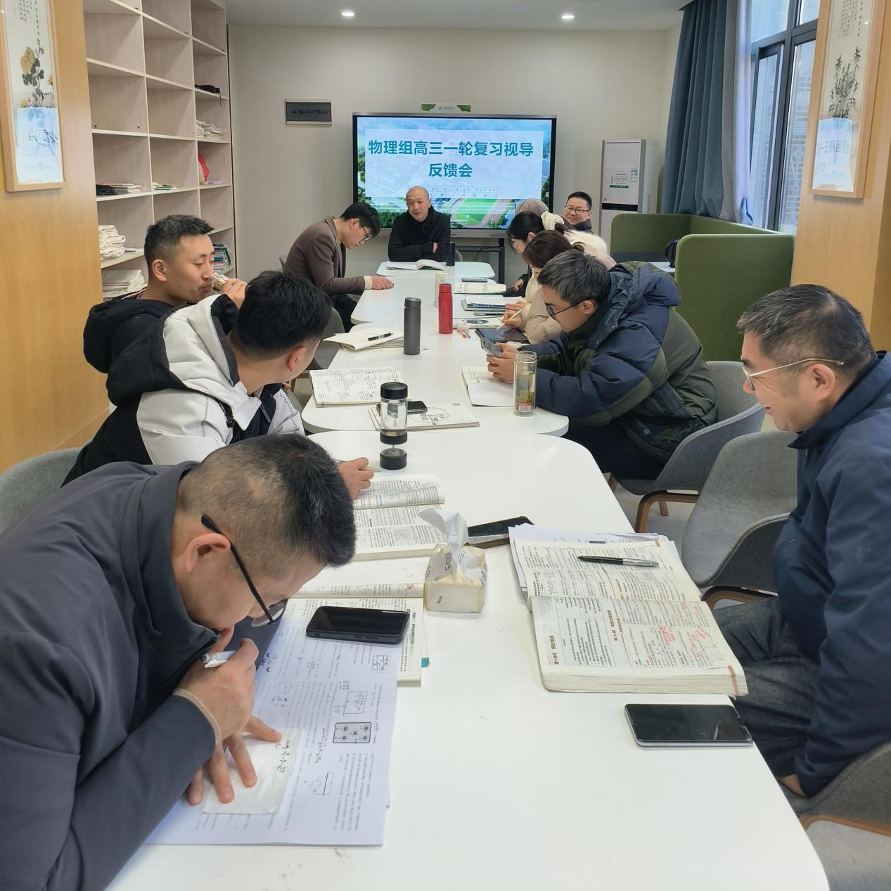 第二周下午教研时间,全体高三物理教师与视导专家齐聚一堂,开展了教学反馈研讨活动。会上,陈菁、谢松等四位专家分别结合听课情况,进行了精准点评。他们既肯定了三位授课教师在一轮复习中的亮点与优势,也针对课堂教学中存在的细节问题提出了切实可行的改进建议,尤其强调在一轮复习中要注重知识体系的构建、重难点的突破以及学情的精准把握。与会教师认真聆听、积极交流,在思维的碰撞中明确了后续复习的优化方向。