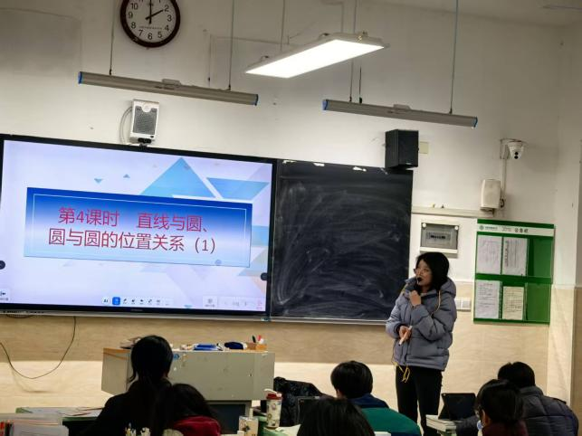 活动伊始,党员教师吴婷率先执教高三数学复习示范课《直线与圆、圆与圆的位置关系》。课堂上,吴婷老师立足高三学情,以知识梳理为主线,不疾不徐地引导学生回顾核心概念、定理公式,通过思维导图式的板书帮助学生构建系统的知识框架,让零散的知识点形成有机整体。教学过程中,她始终践行“以学生为中心”的教学理念,设计多层次互动问题,通过提问、小组讨论等形式充分调动学生参与热情,及时捕捉学生认知盲点并针对性答疑。在例题讲解环节,吴婷老师工整规范的板书条理清晰,不仅细致拆解解题步骤,更引导学生从代数运算、几何直观等多角度分析解题思路,展现了“一题多解”的教学智慧,为高三复习课的高效开展提供了优质范例,充分发挥了党员教师的先锋模范作用。课后,听课教师围绕课堂设计、学情把握、方法指导等方面展开热烈研讨,一致认为这节示范课为高三后期复习提供了可借鉴的实践路径。
