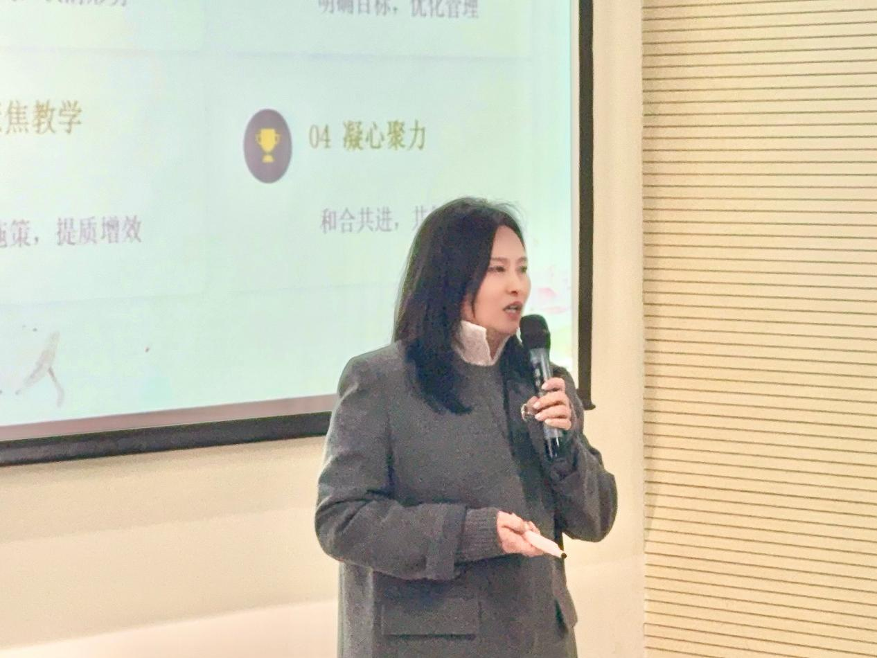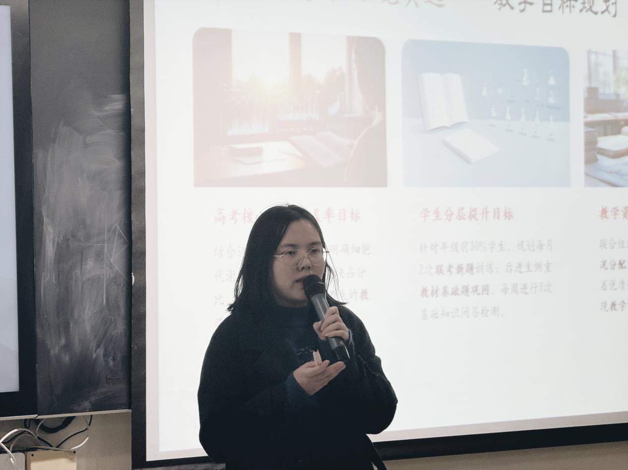 会议伊始,高三年级部副主任项林以《数据驱动教学 精准施策提质》为题作专题发言。发言紧扣高三教学核心,从班级整体概览、各学科学情分析、高分学生培优等维度,以具体数据为支撑,精准剖析上学期教学工作的亮点与短板,为后续教学靶向发力、提质增效明确方向,让数据成为教学决策的科学依据,为高三冲刺阶段的教学规划奠定坚实基础。