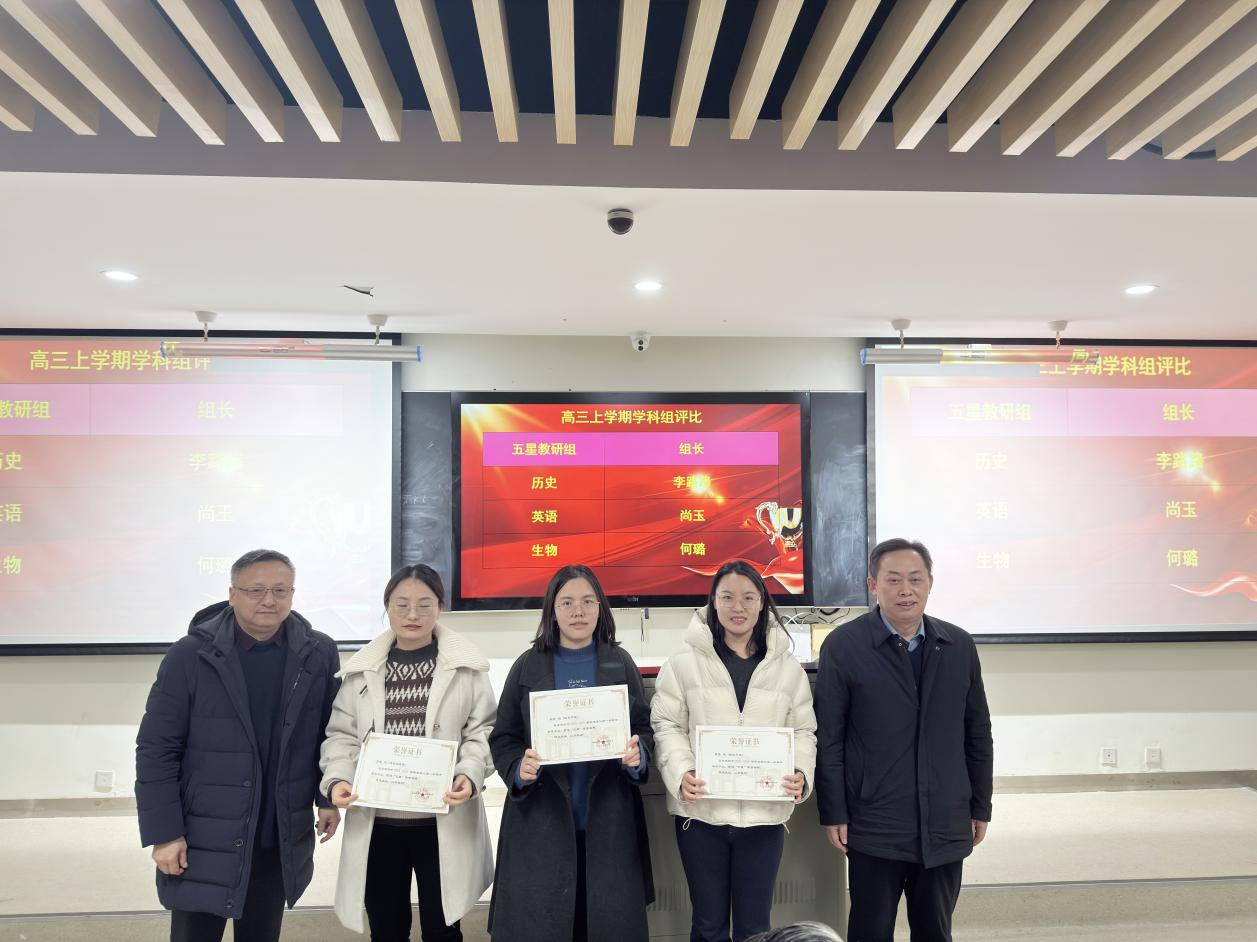 耕耘见硕果,奋进获荣光。会议现场公布高三上学期学科组评比与五星班级评选结果,并举行颁奖仪式。一张张奖状,既是对全体师生过往拼搏的肯定,更是对高三团队再接再厉、再创佳绩的激励,让榜样的力量凝聚起攻坚备考的强大合力。