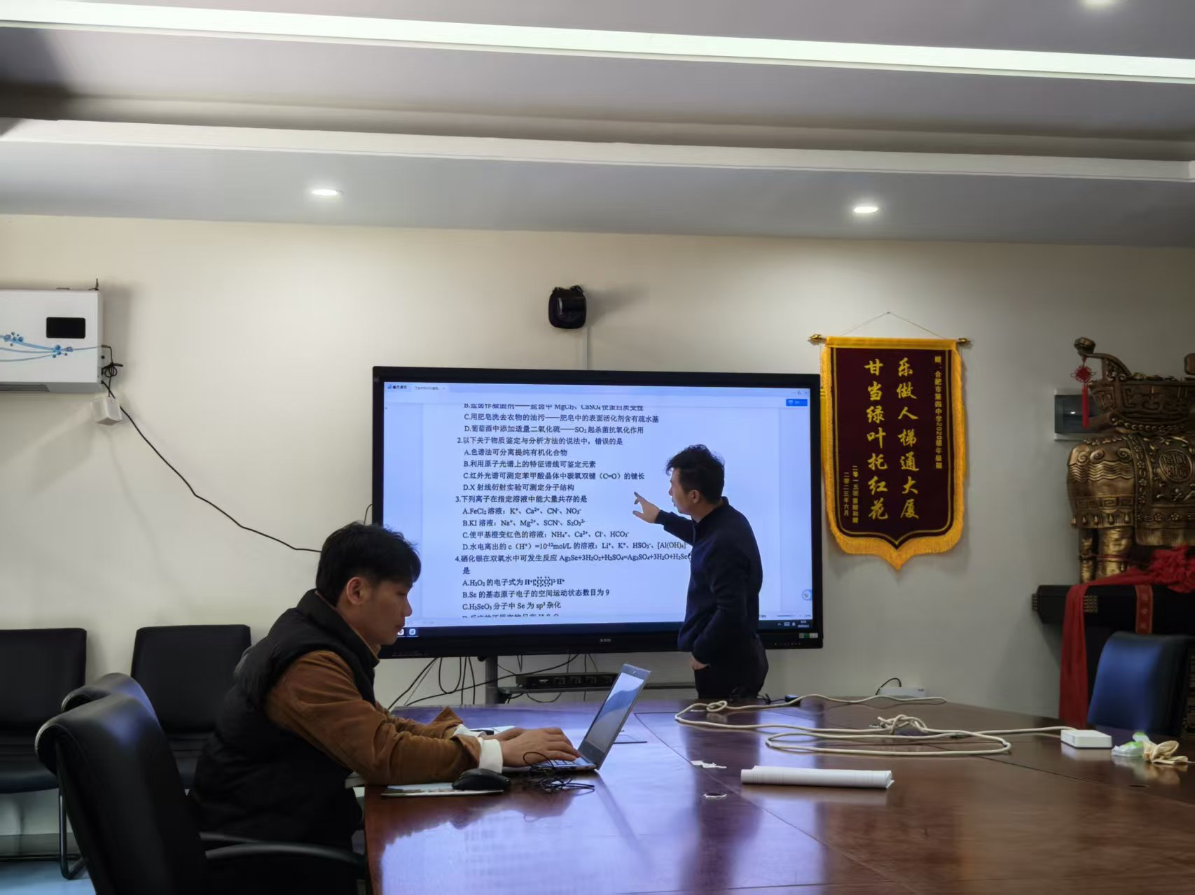 为了进一步落实新课标要求、提升化学高三二轮复习质量、直面高考高点需求、破解盲目复习困境,2026年4月2日上午合肥四中高三化学组在年级部会议室进行了《2026年高考蓝皮书——高考试题分析》专题研讨活动。本次活动由教研组长李雪松老师主持,全体成员按时参加。