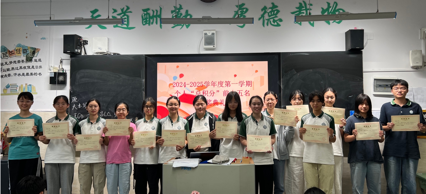 班会还特别表彰了高二第二学期个人积分排名前十五的同学。他们勤奋自律、积极进取,在平时的学习、活动和班级事务中表现突出,是班级正能量的优秀代表。