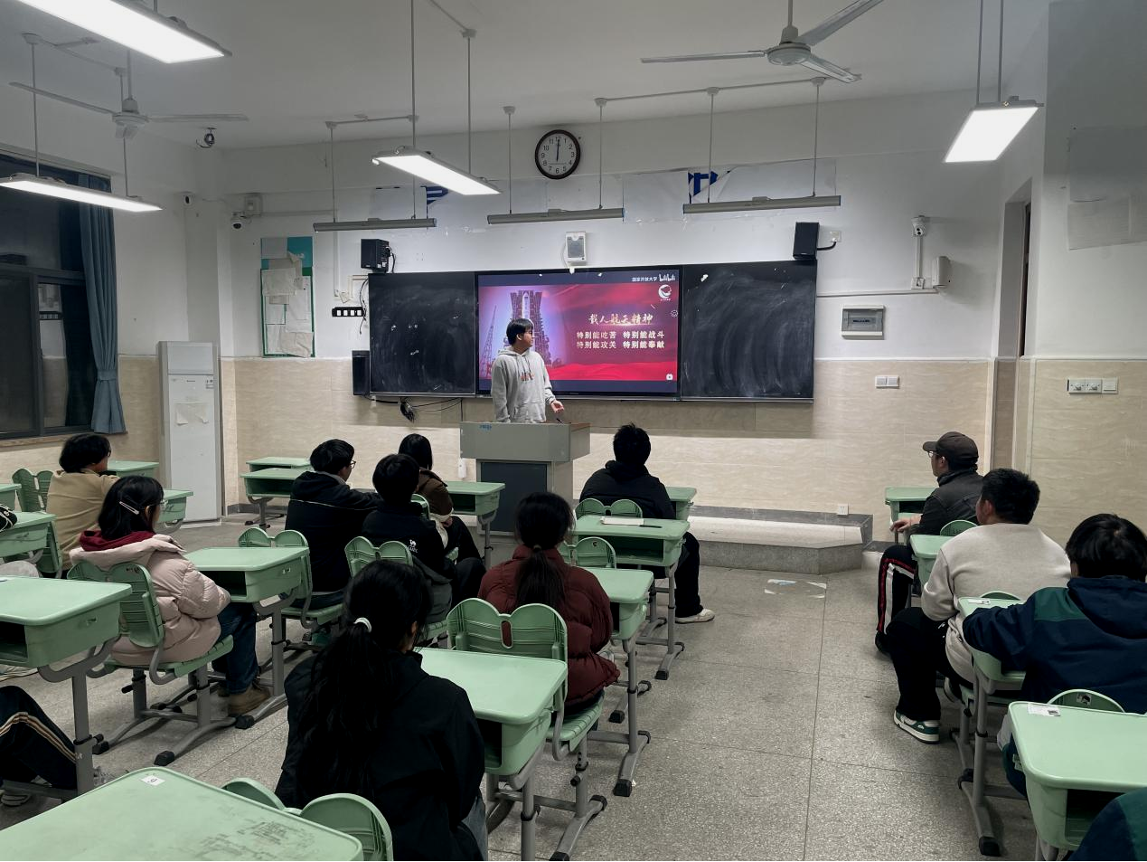 神舟飞天揽月,嫦娥奔月探穹,中国航天人用一次次突破,书写了属于中国人的航天传奇,更铸就了宝贵的航天精神。作为即将迎战高考的高三团员,我们更要从中汲取奋进力量。12月5日下午,一场以“学习航天精神,争做时代先锋”为主题的团员集体学习活动举行,全班团员齐聚一堂,共同感悟航天精神的深刻内涵,畅谈青春理想与奋斗方向。