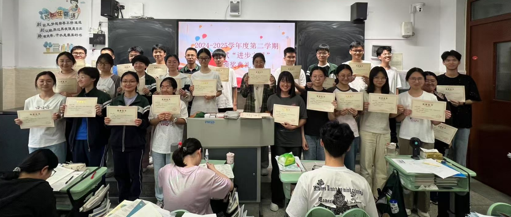 2025年5月12日下午班会课,高二2308班教室掌声雷动,一场以“期中学情分析及表彰”为主题的班会火热举行。班主任丁武老师与全班同学共同盘点成长、展望未来,为即将到来的高三蓄力。