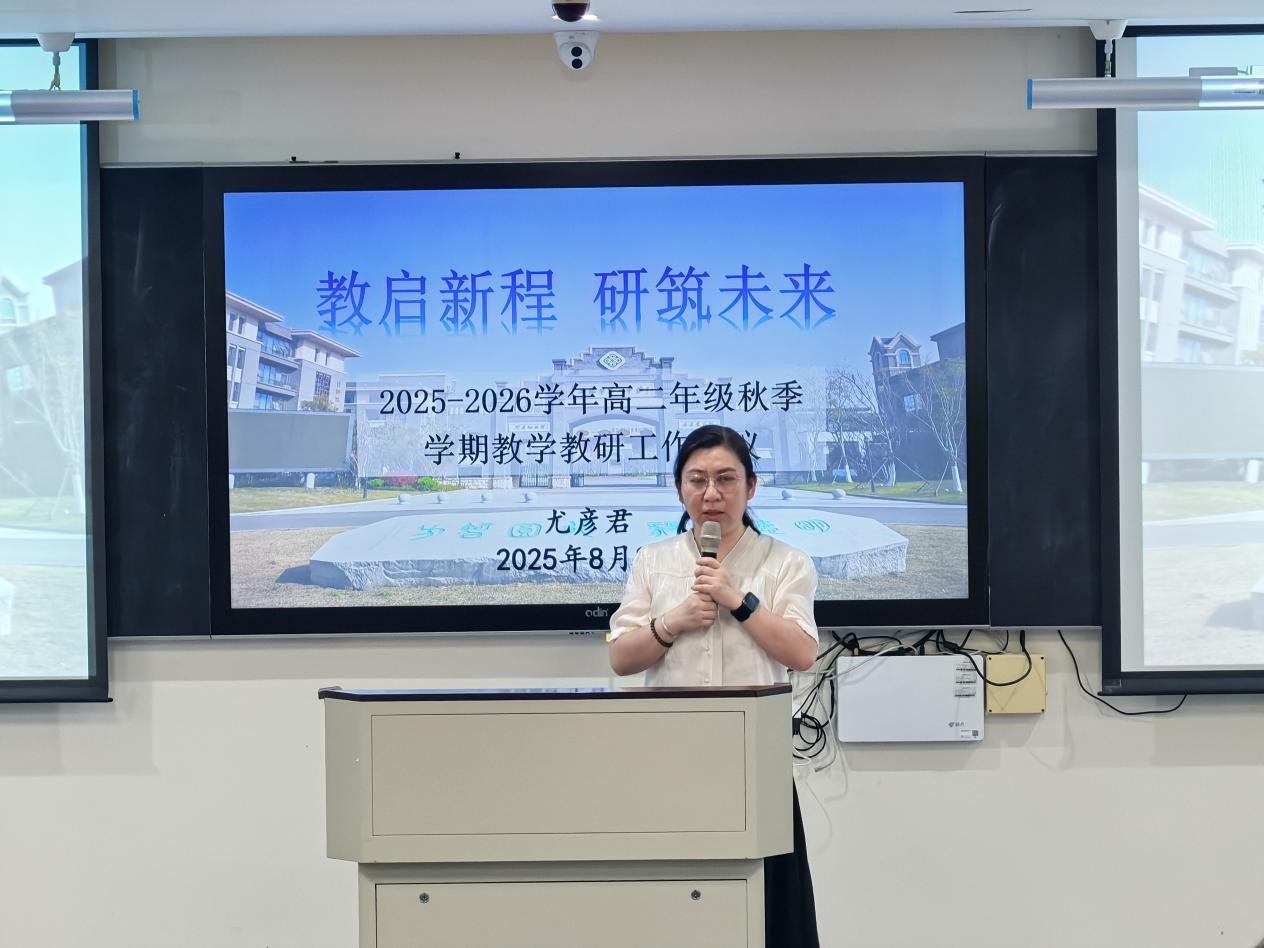 随后,主任助理尤彦君围绕新学期教学教研工作展开发言,为高二年级教学工作制定“任务书”。尤彦君首先强调了本学期教学教研工作的核心目标,她指出,高二年级是学生学业承上启下的关键阶段,要以目标为引领,精准发力,帮助学生夯实基础、提升能力。随后,尤彦君针对新学期教师备课、上课、教研、作业布置等方面提出具体要求。尤彦君指出,全体教师要严格遵守课堂教学规范,提前到岗,确保课堂教学任务明确;学科组要积极开展听评课活动,对学生的作业要认真批改,及时发现问题,改进教学。