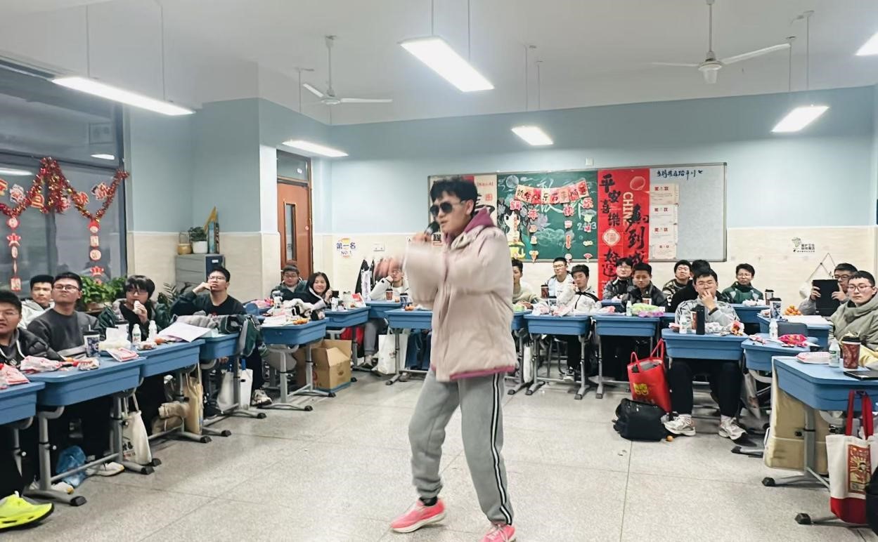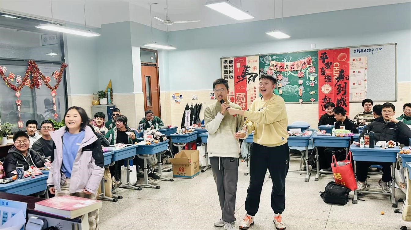 随后,左文博、卜国根深情演唱的《其实》,蒋伯麟带来的动感英文歌曲《Closer》,以及黄添宥提前为联欢会录制的优美钢琴曲《梦中的婚礼》,接连将现场带入一个又一个艺术享受的高潮。张墨轩、张鸣鹤、吴浩然带来的小品《你画我猜》构思巧妙,笑点频出,而荣凯睿演唱的《圣诞星》则为新年增添了温馨浪漫的色彩。整个环节高潮迭起,掌声雷动,教室化作了欢乐的海洋。