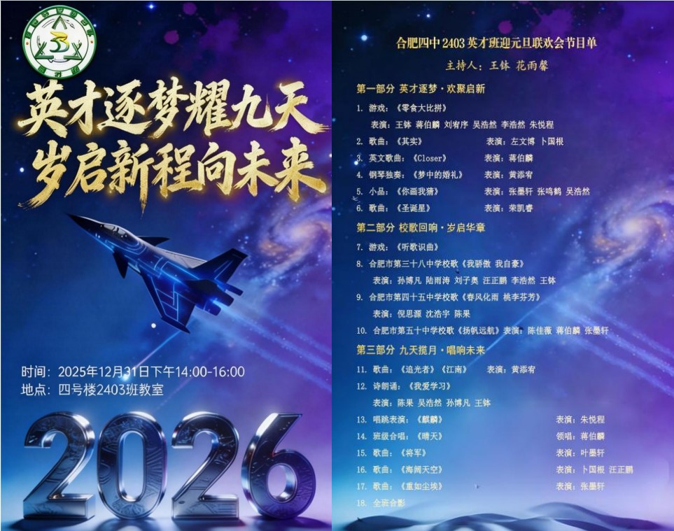 英才逐梦耀九天,岁启新程向未来——合肥四中2403英才班成功举办2026年元旦联欢会