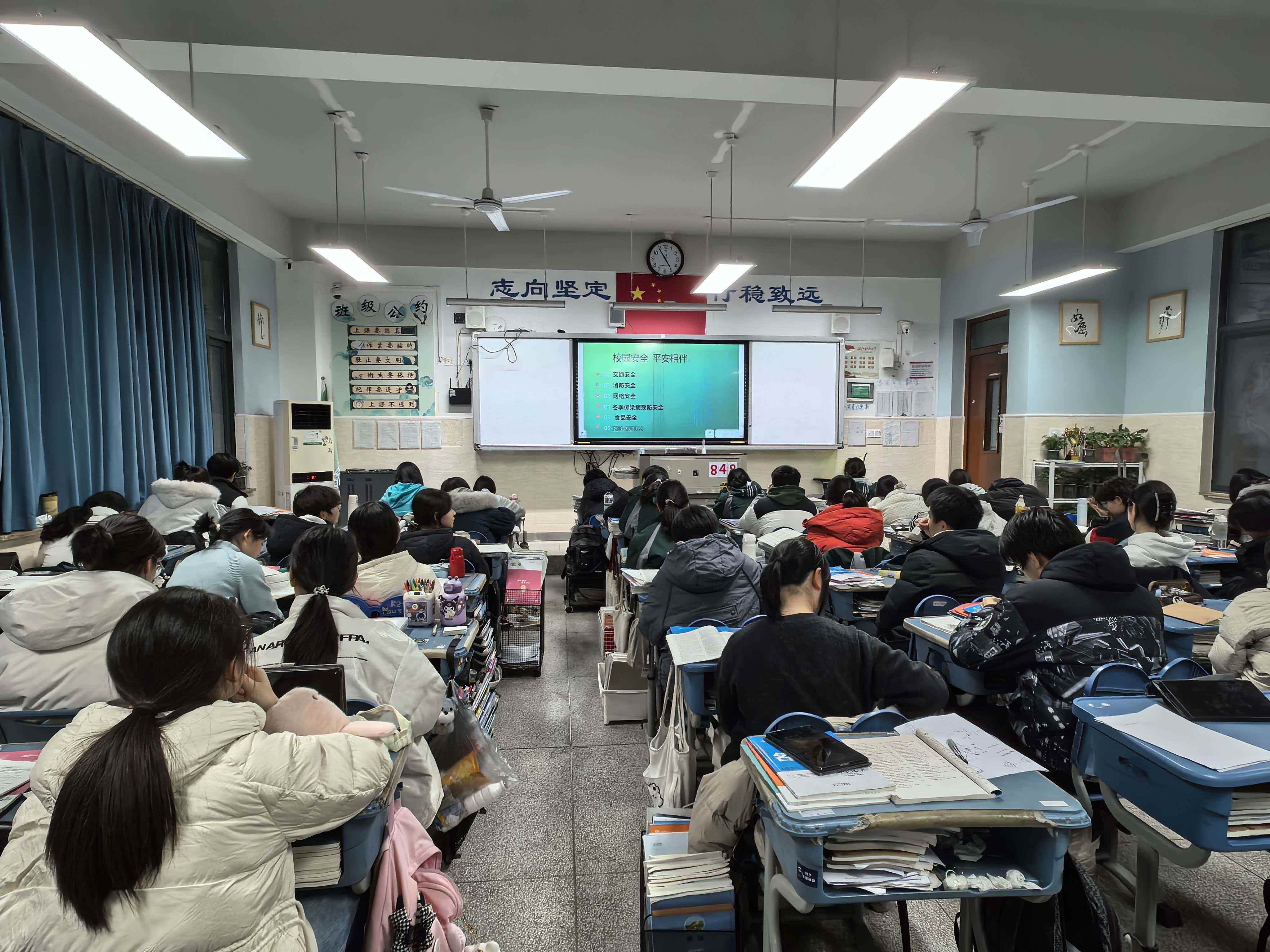 班会还特别融入了校园安全教育内容,围绕交通安全、消防安全、网络安全、冬季传染病预防、食品安全及预防校园欺凌等六大主题,开展生动讲解与温馨提醒,强化学生的自我保护意识与集体责任感。