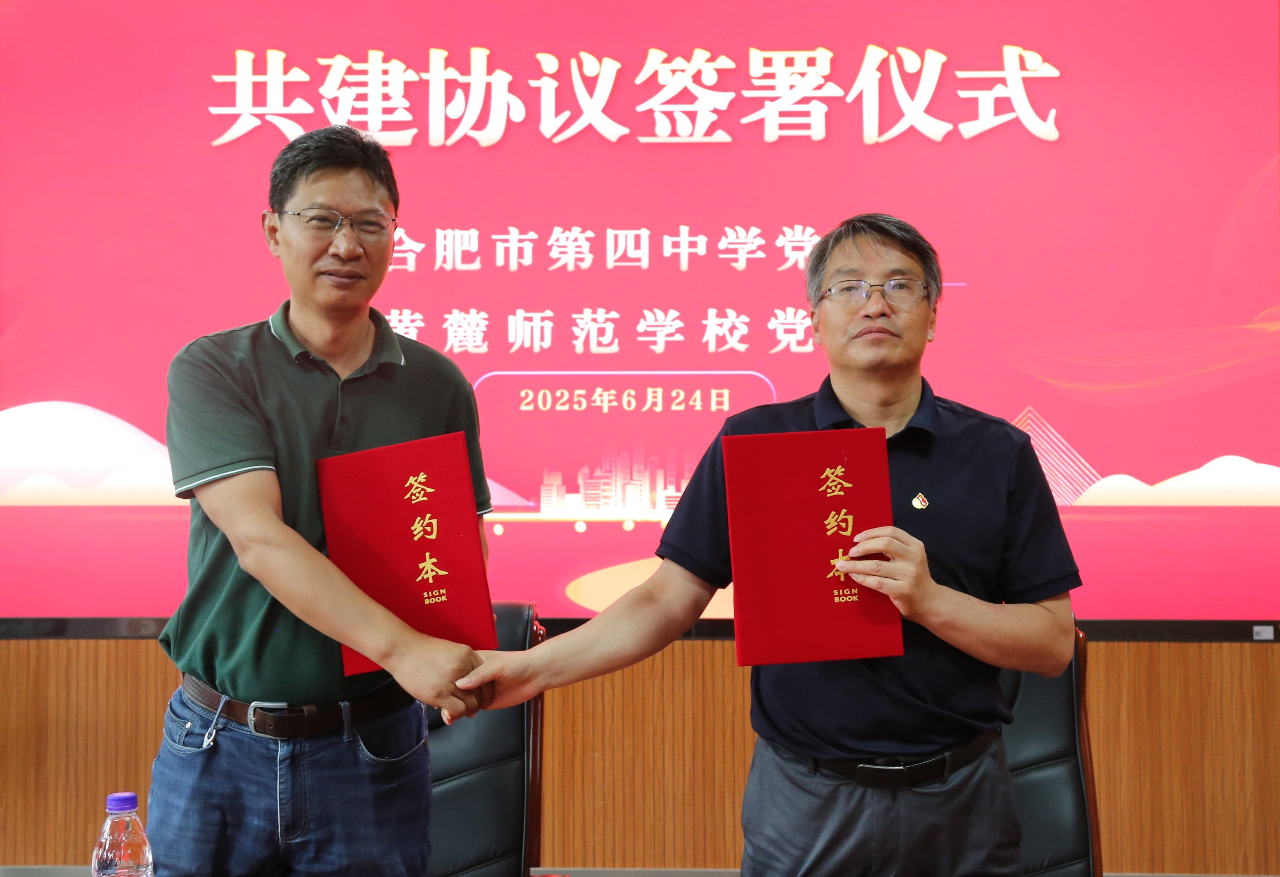 参观结束后,合肥四中党委与黄麓师范学校党委举行了党建结对共建协议签署仪式。下一步,两校将以综合高中班共建为契机,充分发挥党建引领作用,在师资交流、课程开发、学生培养等方面开展深度合作,携手探索新时代教育发展新路径,为培养德智体美劳全面发展的社会主义建设者和接班人注入新动能!