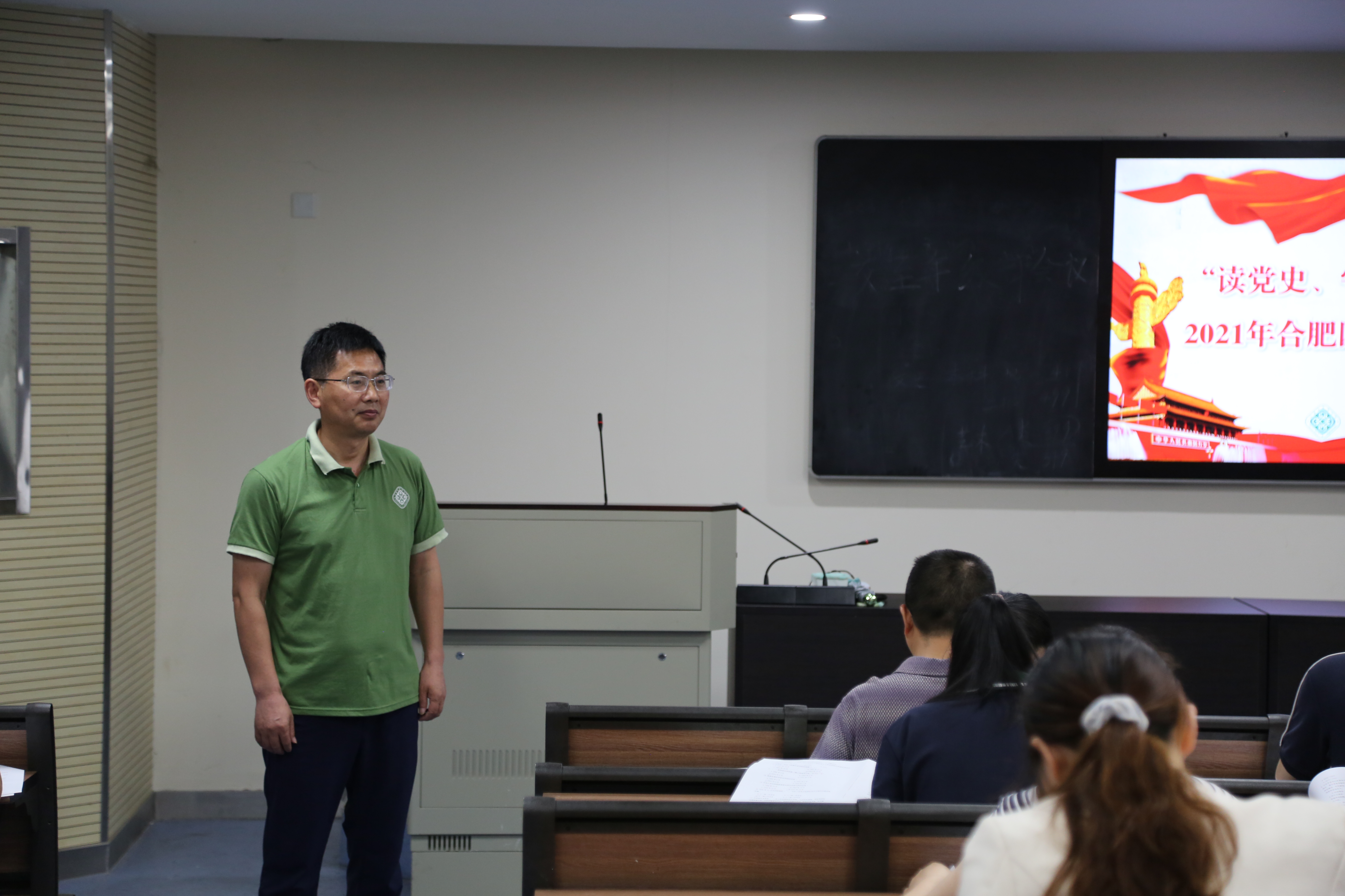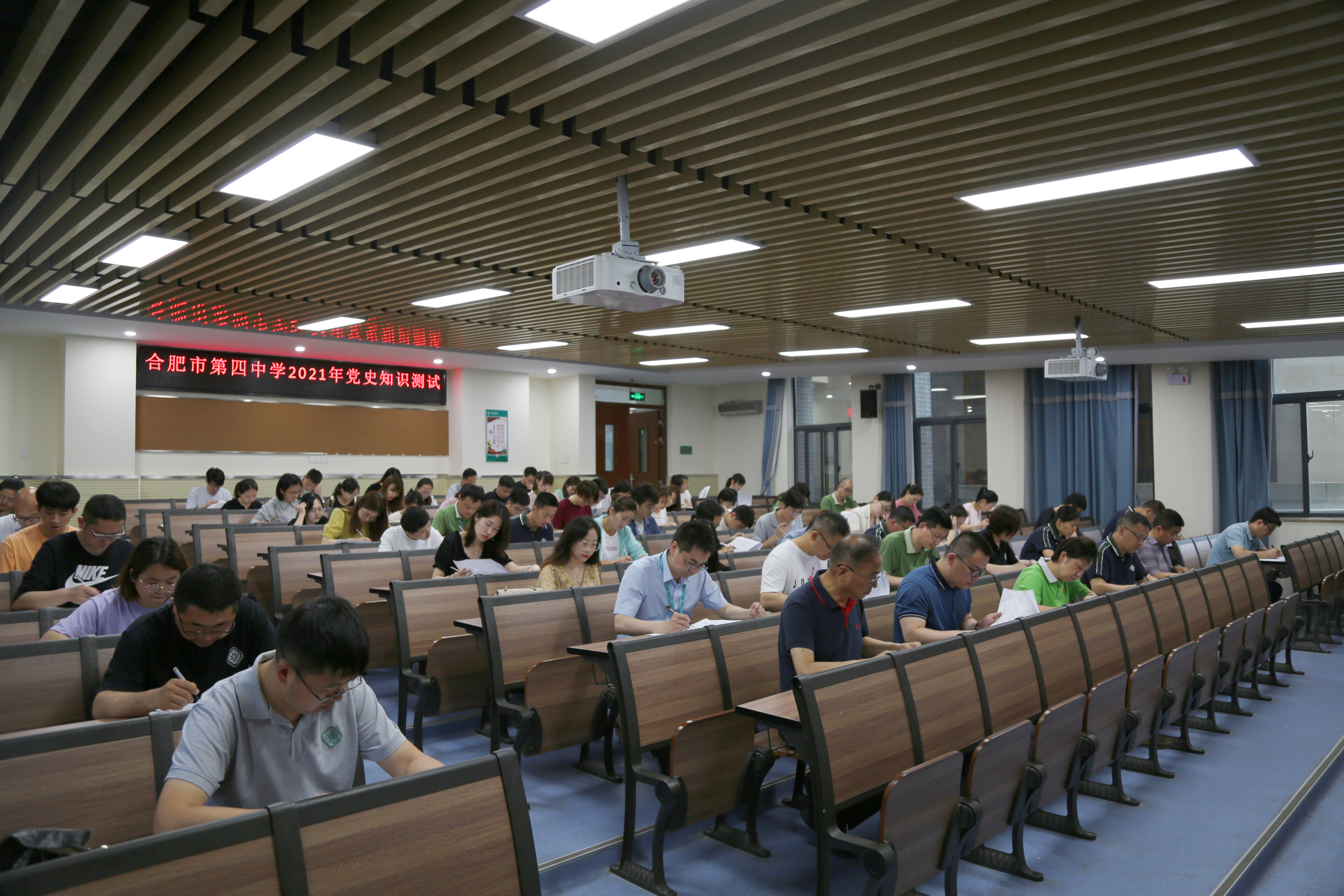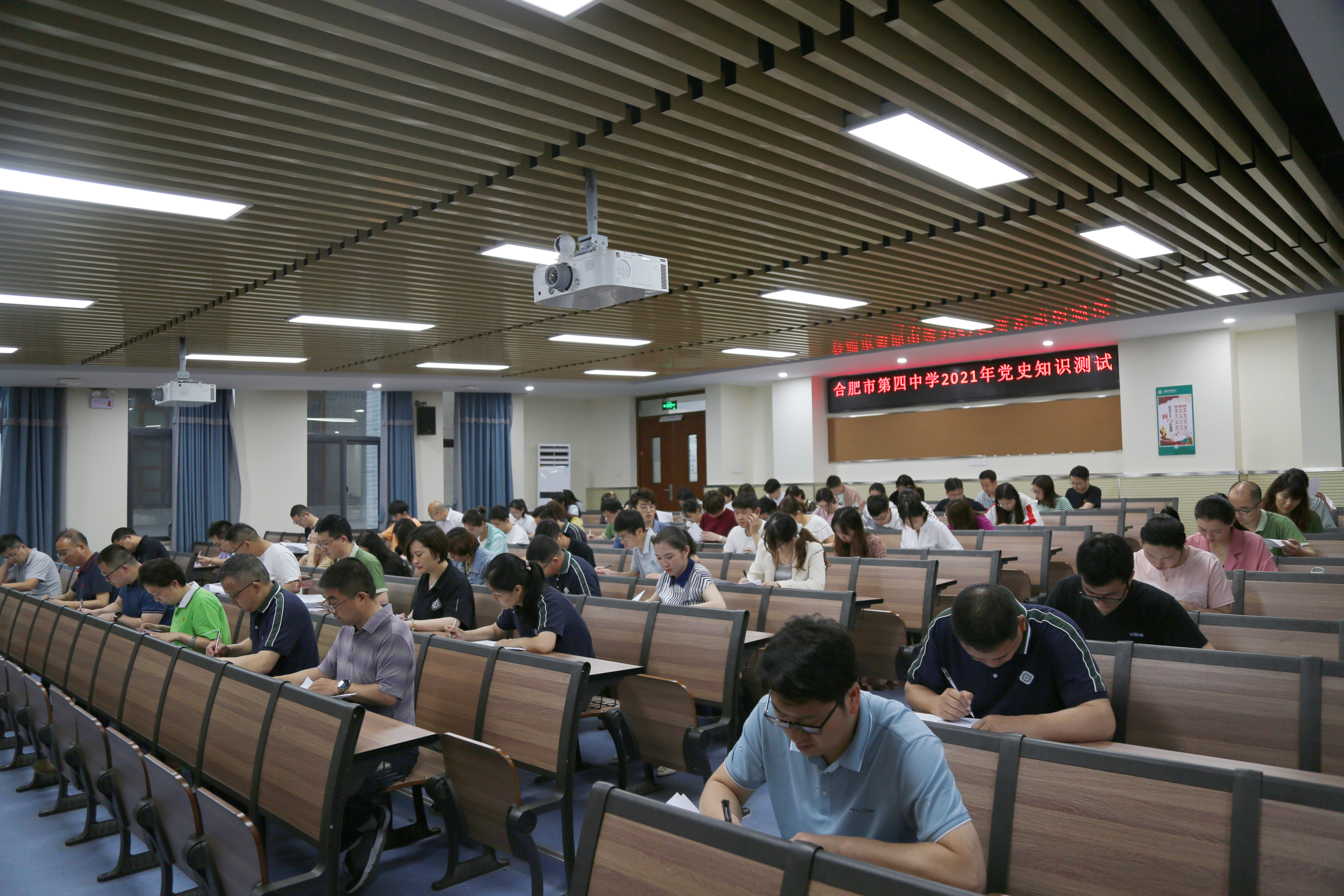 2021年6月3日上午,为扎实推进党史学习教育,合肥四中党支部党史知识测试在四端楼一楼合班教室举行,由正高级教师、群众代表储炳南和特级教师、民主党派代表杜兴国监考。合肥四中全体党员干部参与测试。