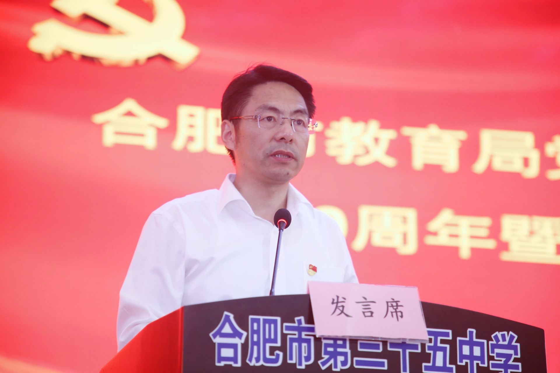 2021年7月1日下午,合肥市教育局党委庆祝中国共产党成立100周年暨“两优一先”表彰大会在合肥三十五中召开。会议由市委教育工委专职副书记、市教育局党委副书记李仲生主持。