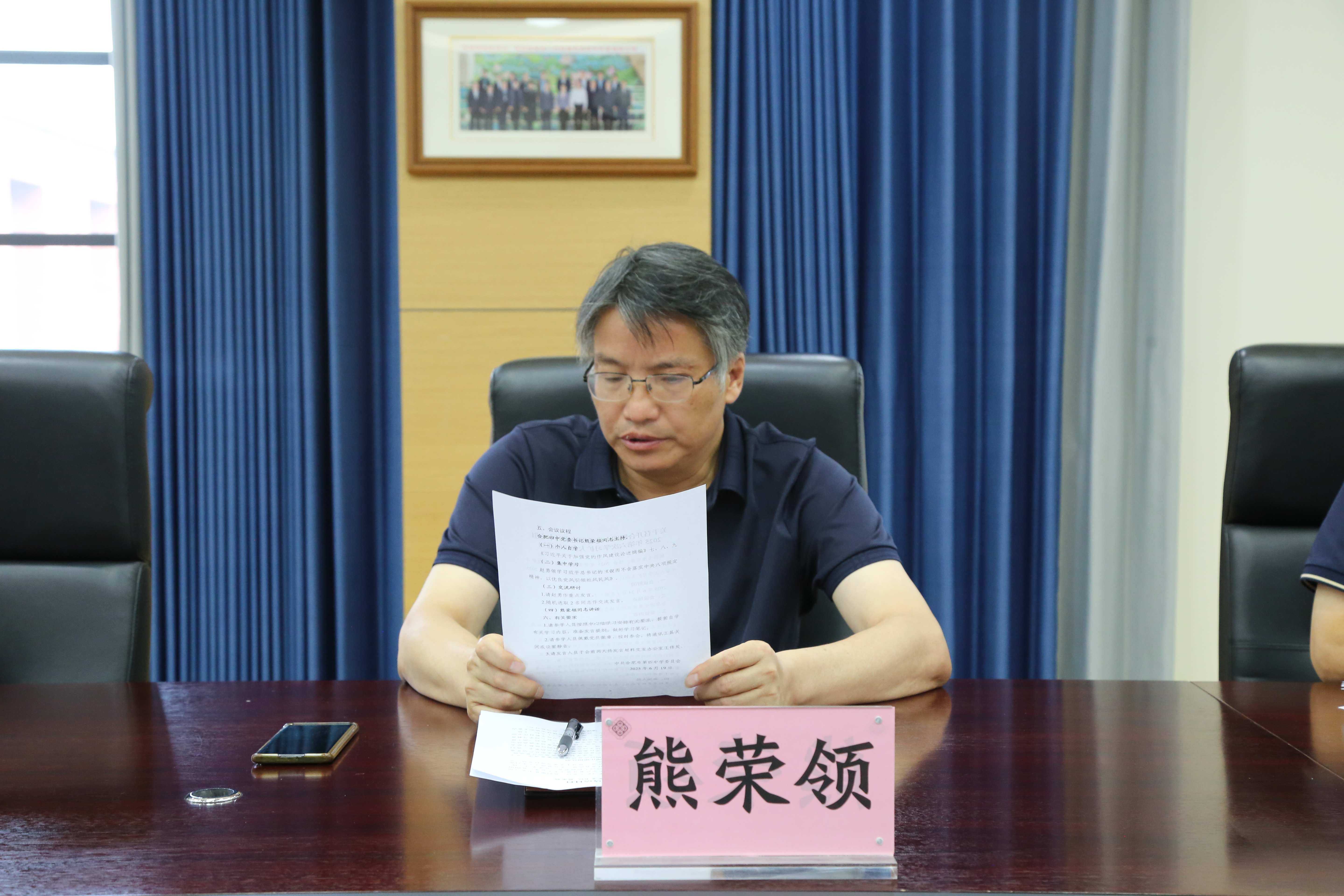 为深入学习贯彻习近平新时代中国特色社会主义思想,进一步推进中央八项规定精神学习教育,2025年6月24日上午,合肥四中党委理论学习中心组2025年第六次学习扩大会议在学校景贤书院五楼会议室召开。合肥四中党委书记熊荣领主持并讲话,学校党委班子成员及各支部(年级)、处室主要负责人参加学习。