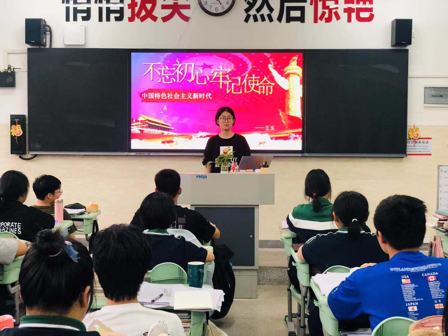 1910班入团积极分子曹欣悦:“党在社会主义⾰命和建设时期的探索,虽然历经艰⾟,但取得的独创性成果和巨⼤成就为新的历史时期开创中国特⾊社会主义提供了宝贵经验、理论准备、物质基础。这些财富值得我们铭记并作为继续前⾏的底⽓和动⼒。”
