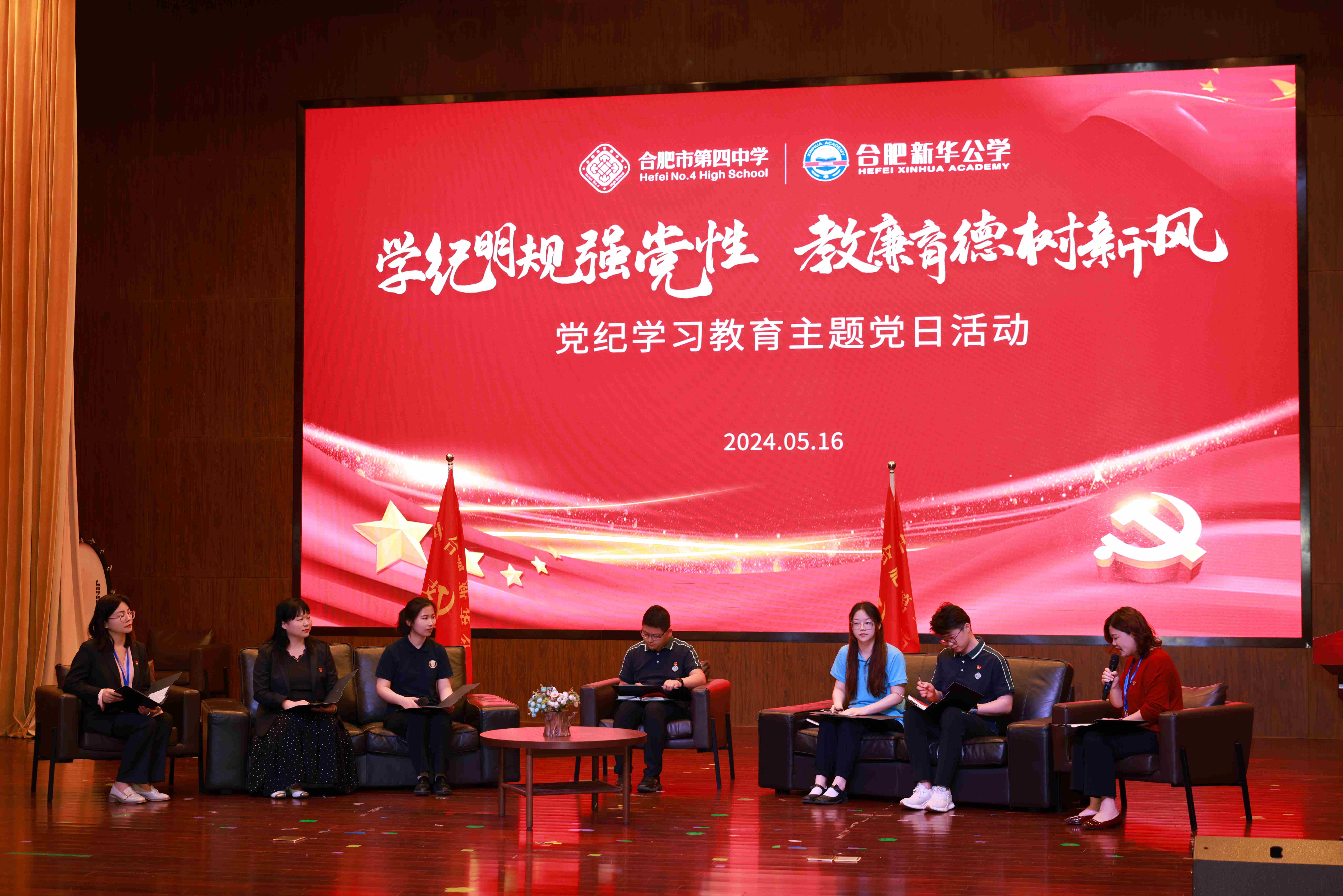 随后,在“学纪明规强党性 教廉育德树新风”党纪学习教育主题党日交流发言活动中,来自合肥四中和新华公学(含美华幼儿园)的党员们围坐台上先后发言。各位党员结合自己的工作实际和学习体会,分享了对党纪学习教育的理解和实践经验,提出了许多具有针对性和实效性的建议和措施。同时,党员们也围绕“党纪学习教育”的重要性和实施路径进行了深入交流和热烈讨论,共同探讨了如何创新学习形式、提高学习兴趣和参与度等问题,有利于贯彻落实党纪学习教育,进一步强化纪律意识、加强自我约束、提高免疫能力,增强政治定力。