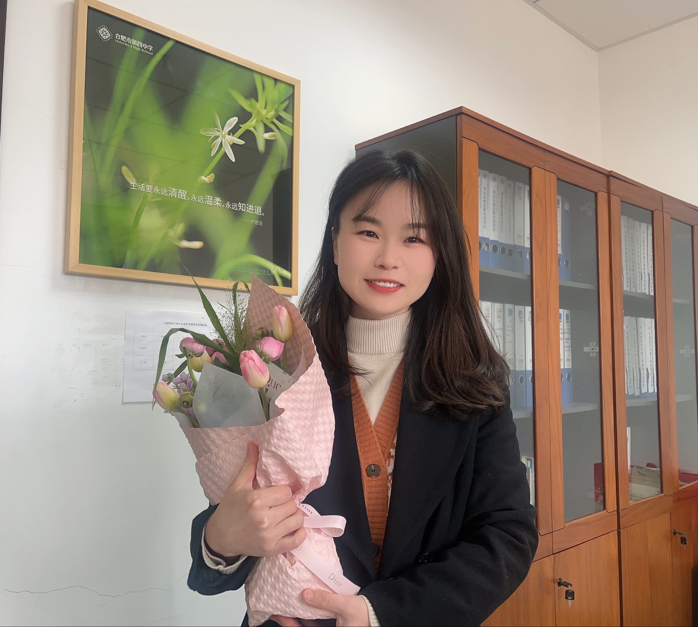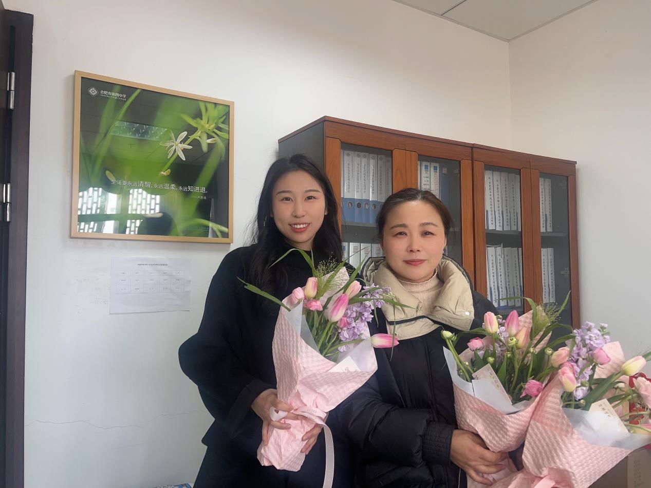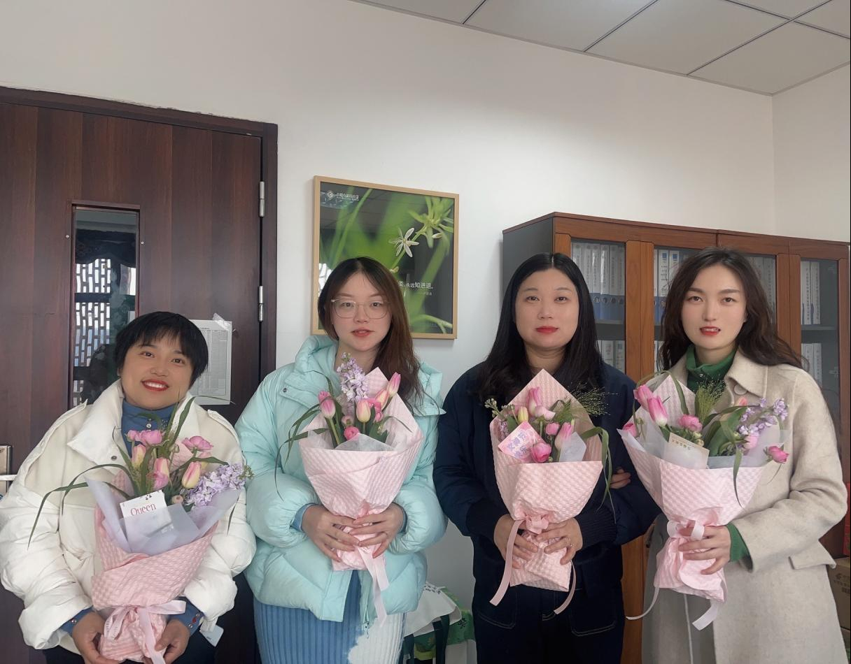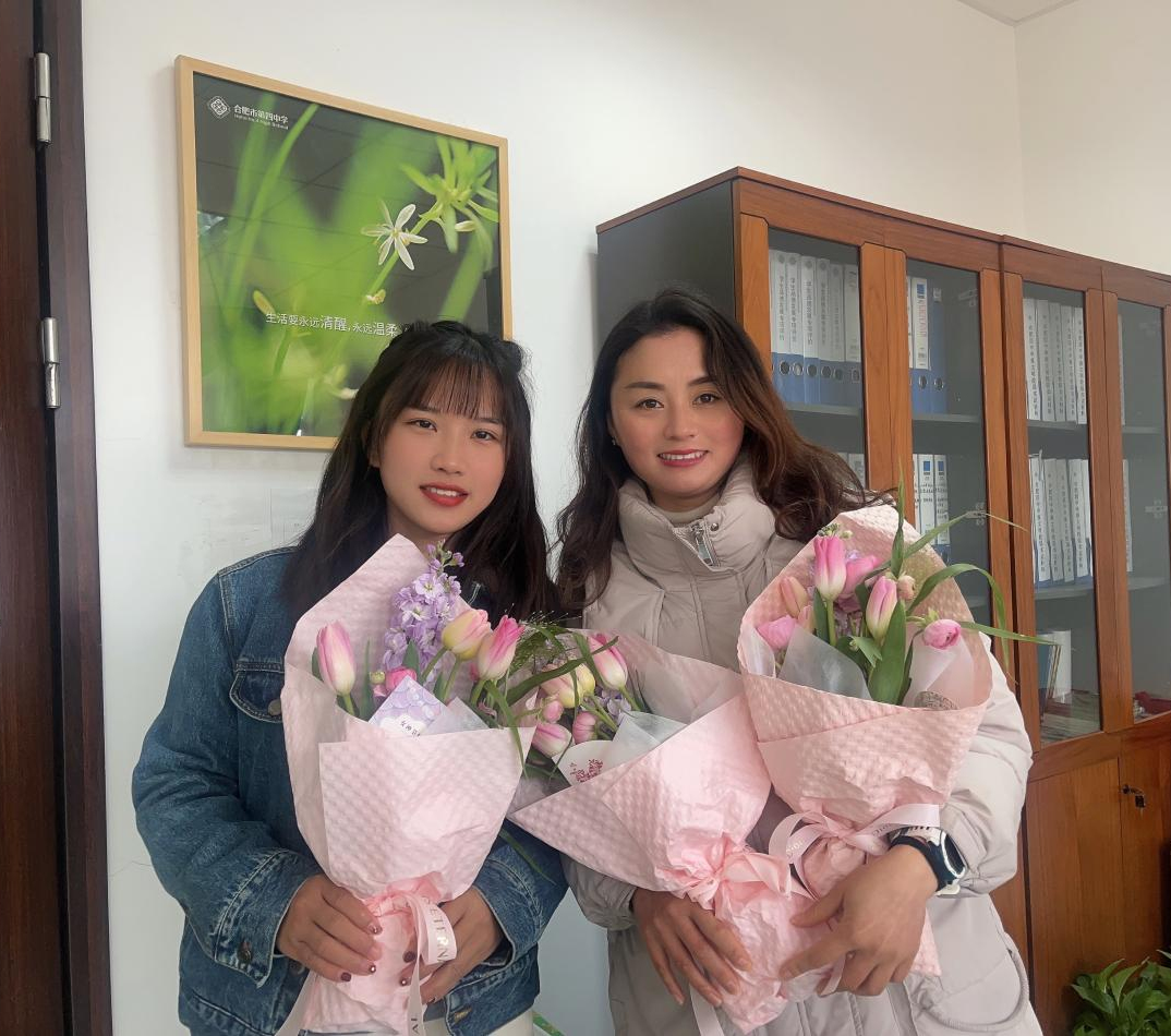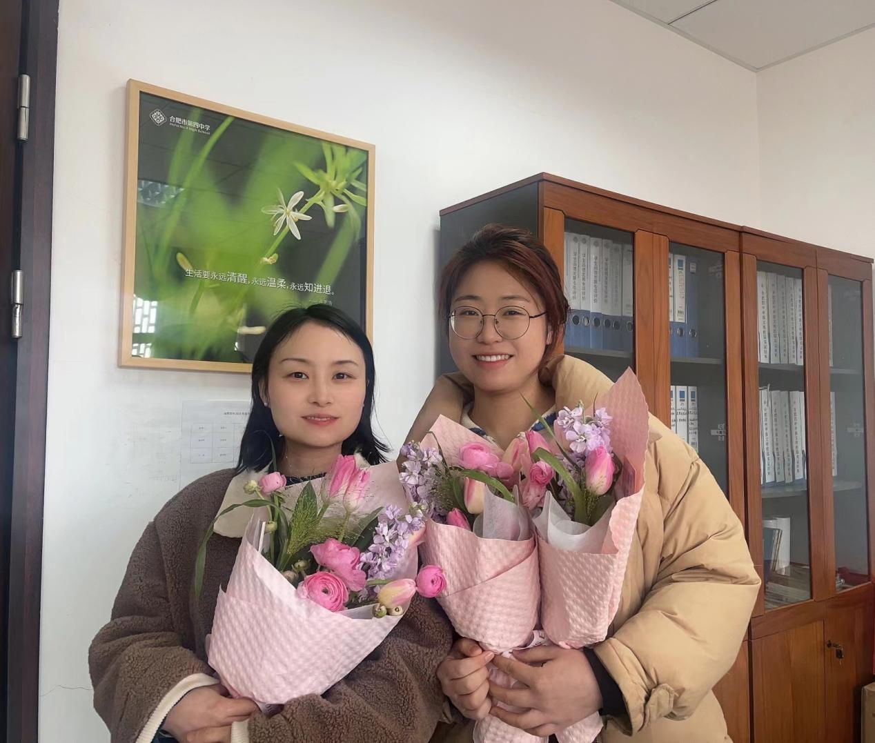 “春风十里·美好随行”活动中,工会每位女教职工精心准备了节日伴手礼,女神们手捧鲜花,绽放出自信的笑容,展现着四中女教职工的青春风采。