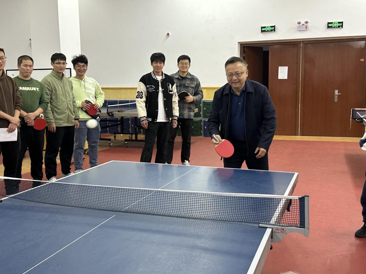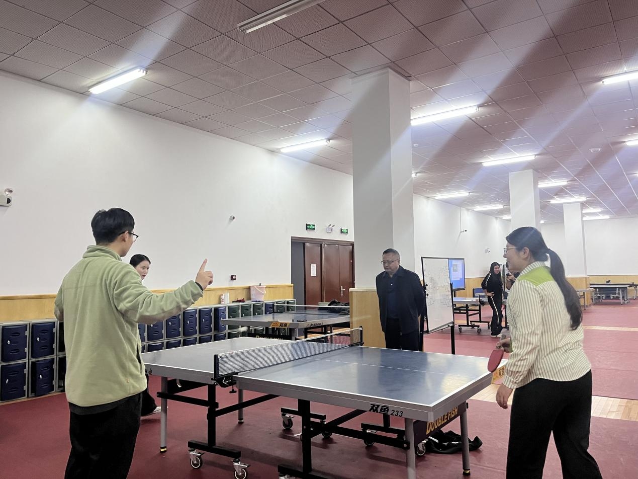 为贯彻“唯阅读、运动与艺术不可辜负”的生活理念,提高教职工的乒乓球运动技术水平,丰富课余生活,缓解教学压力,2024年10月24日,合肥四中工会举办2024年教职工乒乓球比赛,党委委员、副校长李昌年,工会主席黄莹莹亲临现场观赛。