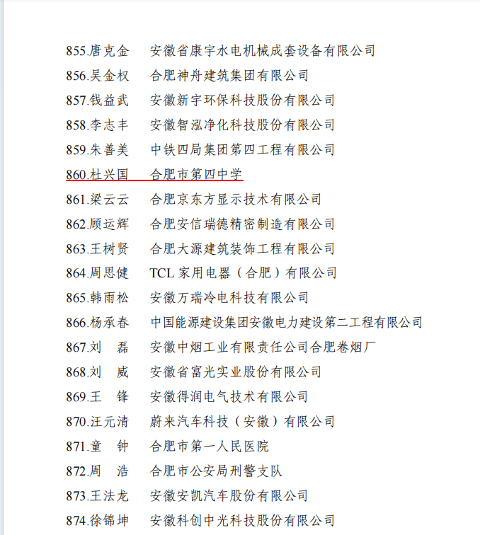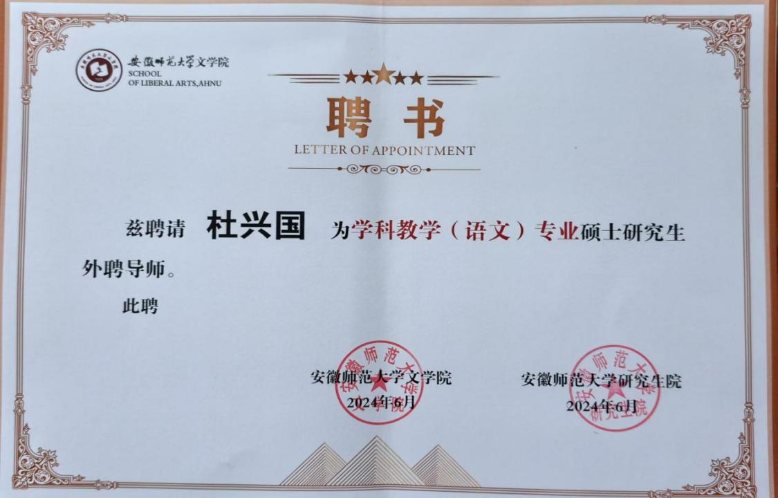 杜兴国老师默默耕耘讲坛36载,乡村13年,城镇17年,省城6年,从小学到中学,进而兼任安徽师范大学硕士生导师,变化的是地点和身份,而一直未变的是他的教育初心。脚下有路,手中有法,心中有爱,甘于三尺讲台,乐于四方教室,成就了万千学子的成人、成才之梦。近日,杜兴国老师被评定为合肥市 2023 年度职工创新竞赛优胜选手“合肥市金牌职工”。