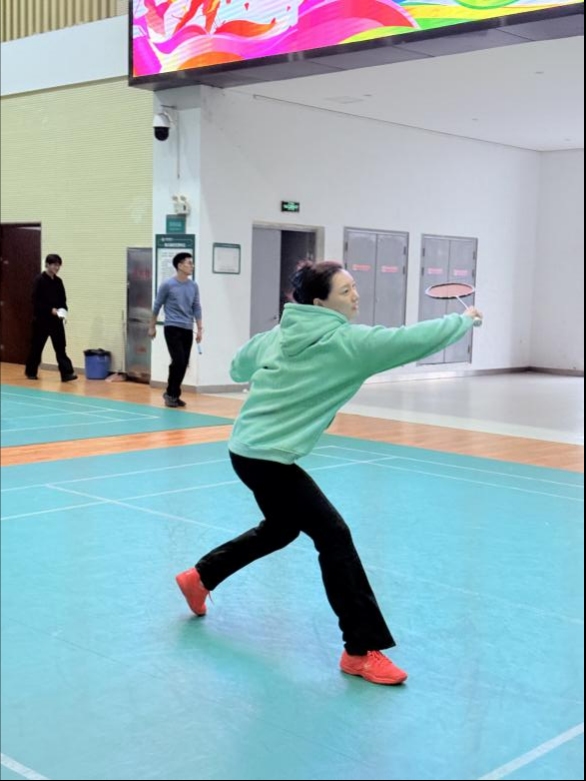 赛场上,老师们换上轻盈的运动装束,化身活力四射的“羽球健将”,发球、接杀、吊球、劈杀……每一次挥拍都凝聚着专注与力量,每一次跑位都彰显着默契与协作。无论是单打的激烈对攻,还是双打的默契配合,都引来观众的热烈掌声与喝彩。