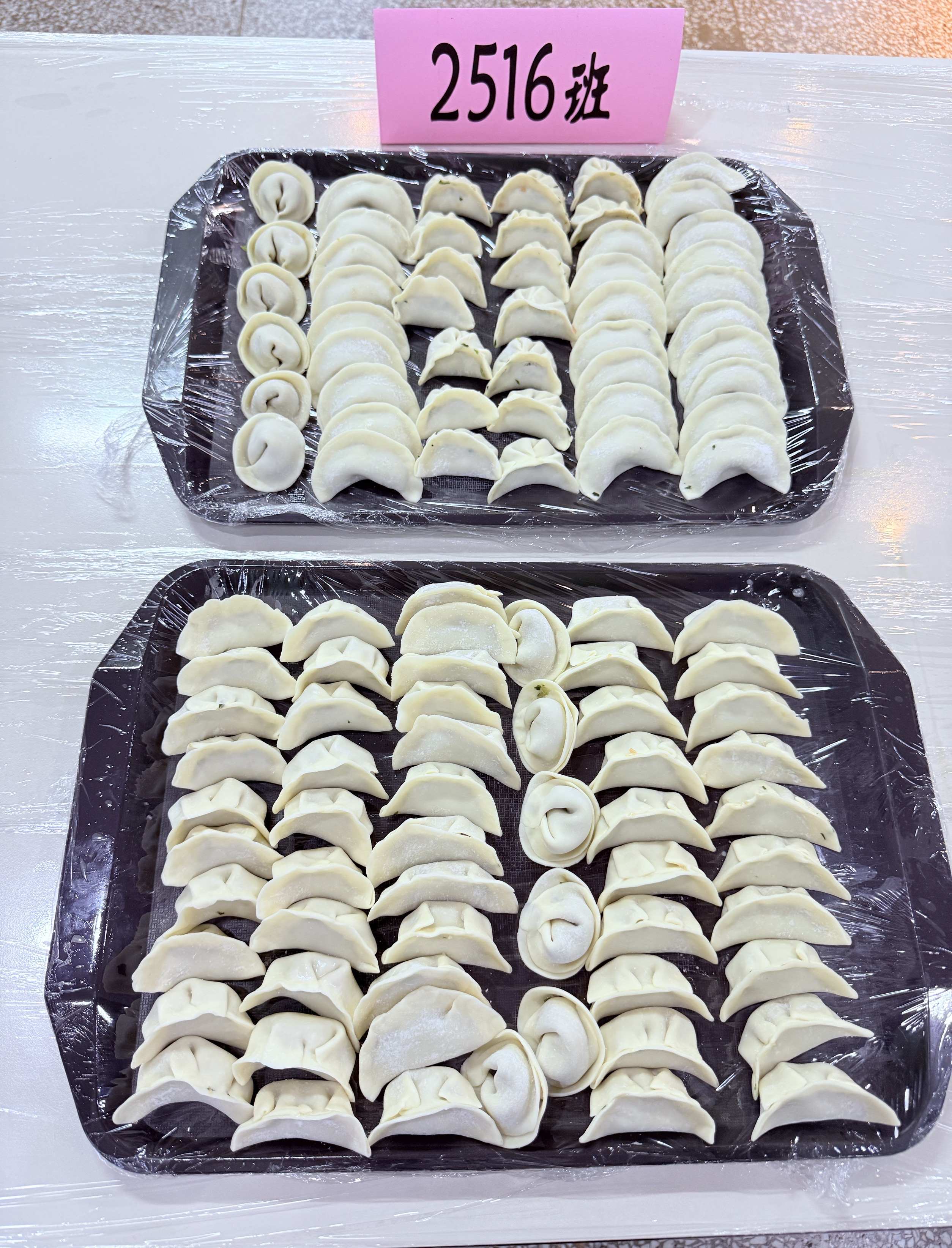 下午15:30,活动正式开始,家长和教师们共同包饺子、话家常,气氛温馨融洽。活动主要分为三个环节:环节一为“指尖竞速,饺出风采”包饺子速度赛:各参赛队伍在规定时间展开激烈角逐,比拼包饺子的速度与数量。家长与老师们分工协作,默契配合,一双双巧手上下翻飞,一个个饱满的饺子迅速成型,充分展现了团队协作精神。环节二为“饺形万象,妙手生花”饺子创意展,各队发挥奇思妙想,进行创意设计,指尖传递温情,烟火升腾暖意,丰富的造型或彰显四中特色,或寓意吉祥,或充满童趣,不仅展示了参与者的巧思与创意,也为现场增添了浓厚的节日氛围,形态各异的饺子承载着家校双方对学生成长的共同期盼,也进一步拉近了彼此的心理距离。环节三为“情满冬至,饺香传情”共享团圆味,师生与家长们共同品尝了亲手包制的饺子,分享劳动成果,交流教育心得,将这份家校同心的温暖传递给每一位学子。