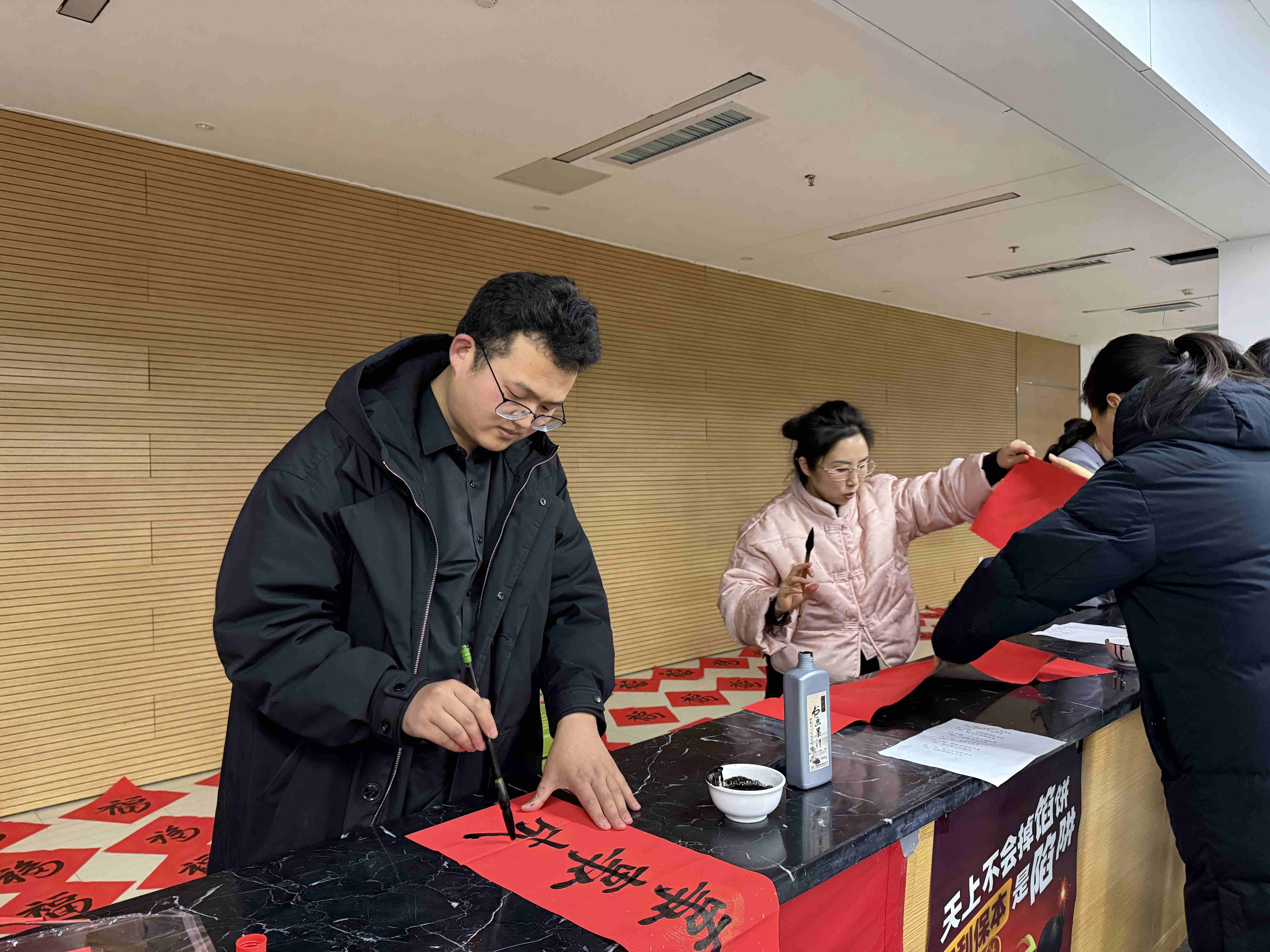 岁末寒冬,年味渐浓。为深入践行工会服务教职工的宗旨,丰富校园文化生活,营造温馨祥和的新春氛围,1月26日,合肥四中工会携手招商银行滨湖科创支行,在景贤书院一楼大厅开展“笔墨迎春,福满校园”写春联活动,特邀安徽省书画协会、中国书法家协会的优秀书法家现场挥毫,为全校教职工送上新春的美好祝福。