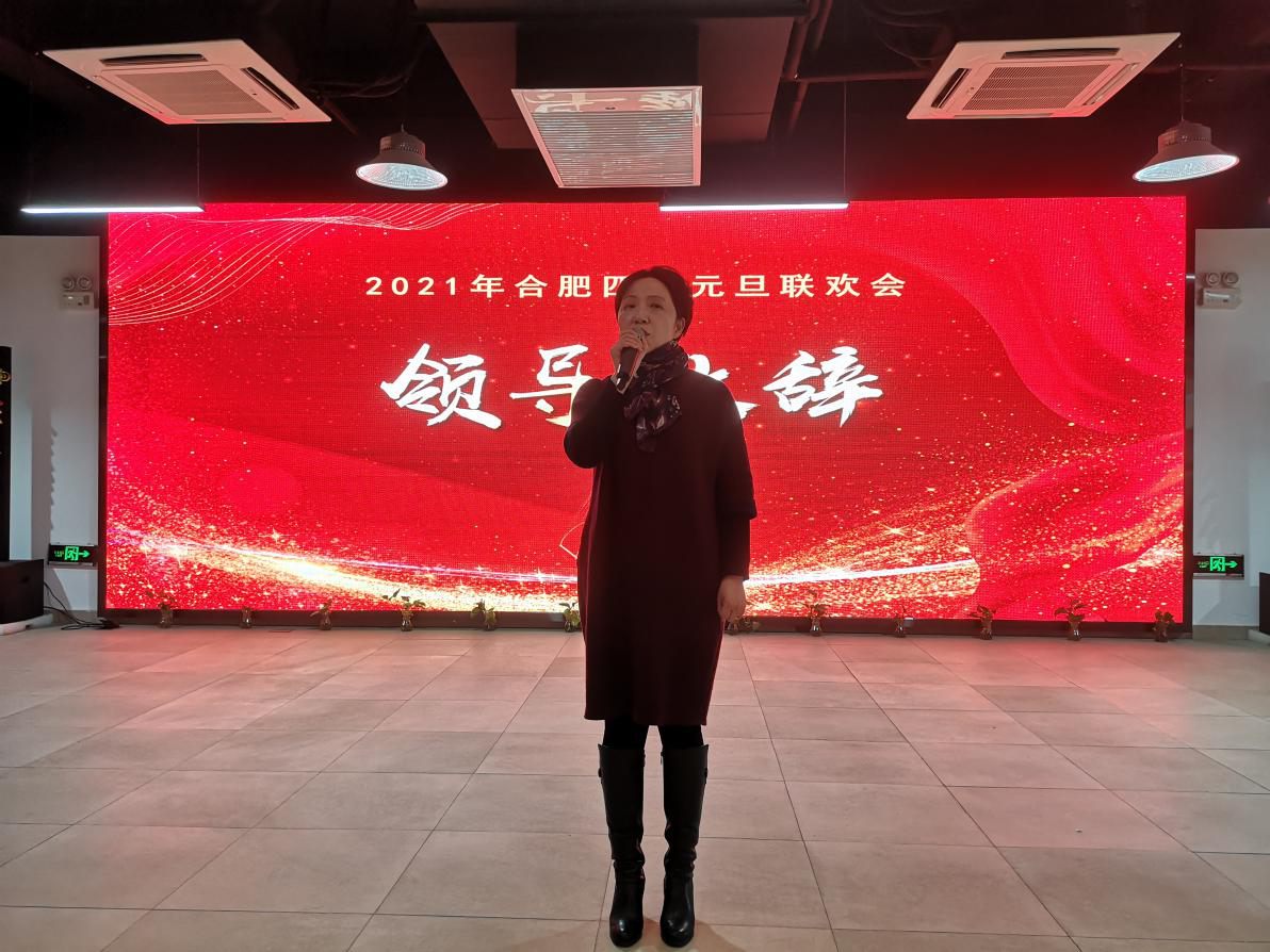 11:44,联欢会在高一年级部优秀教师代表张杰、周薇的主持下拉开序幕,合肥四中党支部书记、校长吴英明作新年致辞,吴校长对充满挑战和考验的2020年作总结回顾,同时对即将到来的2021年提出美好畅想,在吴校长美好的祝福和殷切的期望下,相信全体四中人在2021年定能“四四”如意,携手共进,乘风破浪!