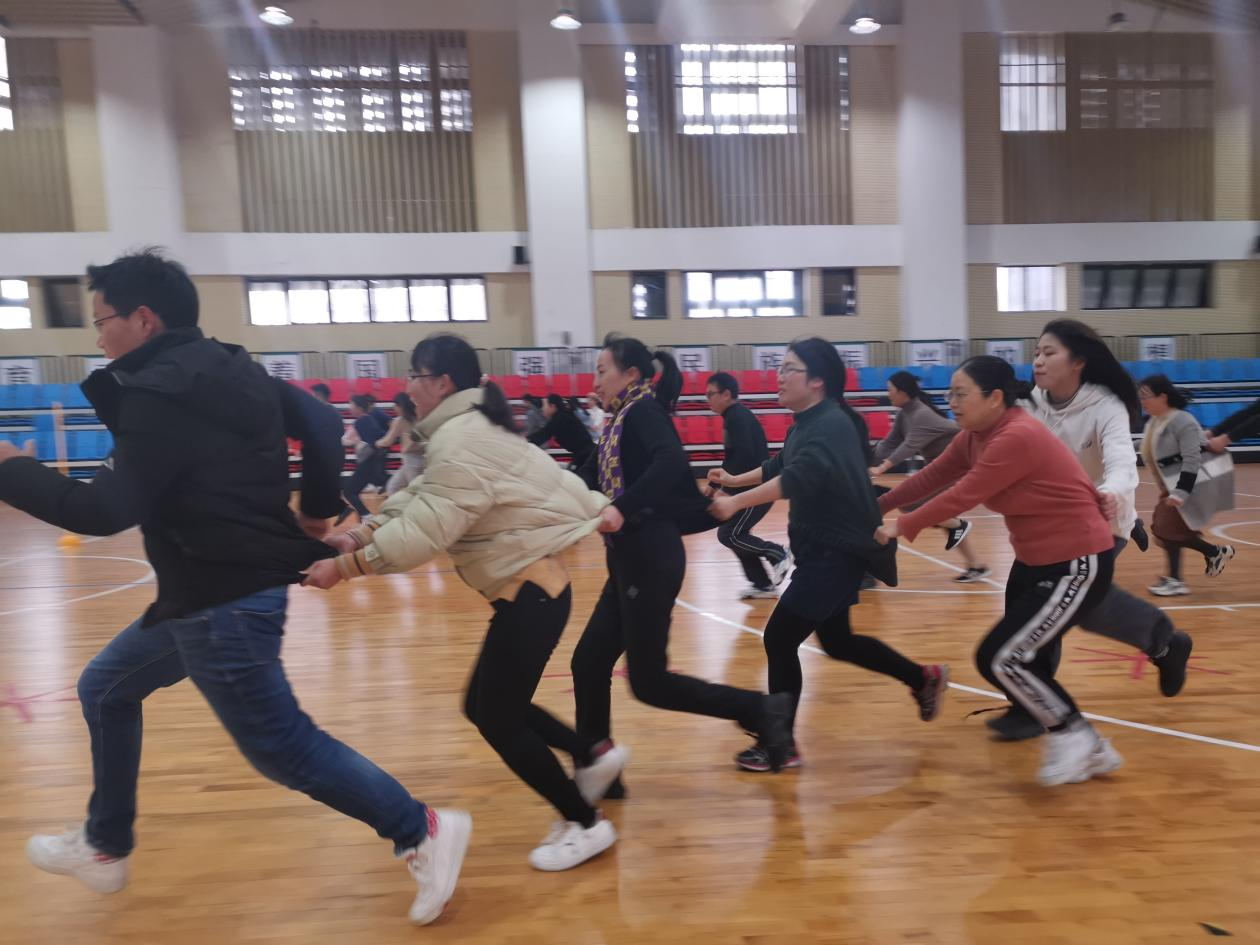 趣味运动会共设置了“火车跑”、“穿龙跳长绳”两个集体项目以及“神投手”、“螃蟹跑”、“定点投篮”、“托球跑”四项个人项目,校领导及各职能部门负责人带头参加。每一个项目都不单是智慧和体力的角逐,还是团结和协作的完美比拼。从运动会开始到结束,参赛的每一个教职工都精神抖擞,充分发扬顽强拼搏、团结合作的精神,此起彼伏的掌声和欢呼声充满整个韵动馆。
