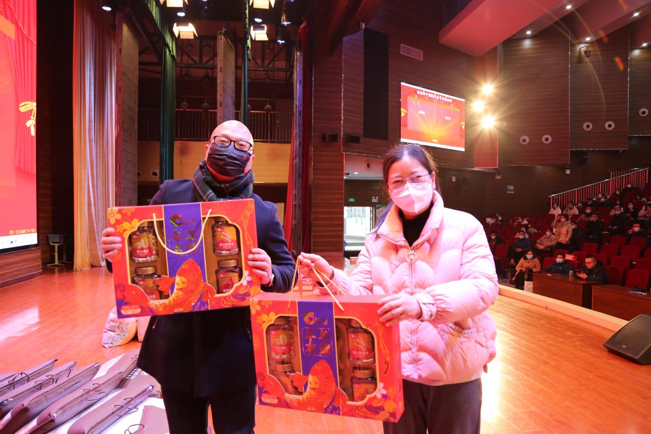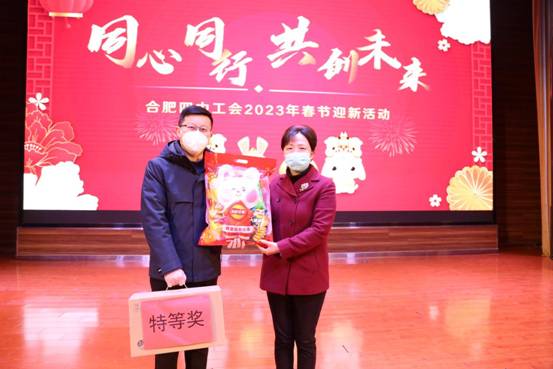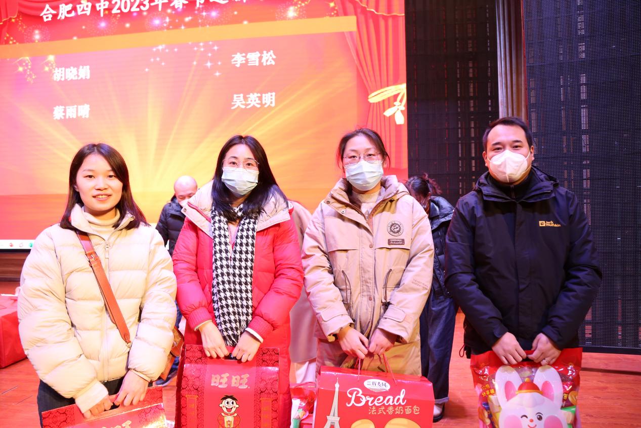 伴随着合肥四中全体师生2022年同心同德、拼搏奋斗的短视频播放,领导们送上新春的祝福,工会迎新活动正式拉开了序幕。迎新活动采用全员发送新年大礼包及现场抽奖方式,给教职工们送上新春的祝福。