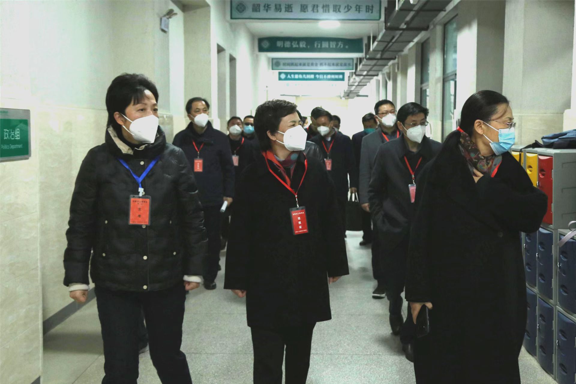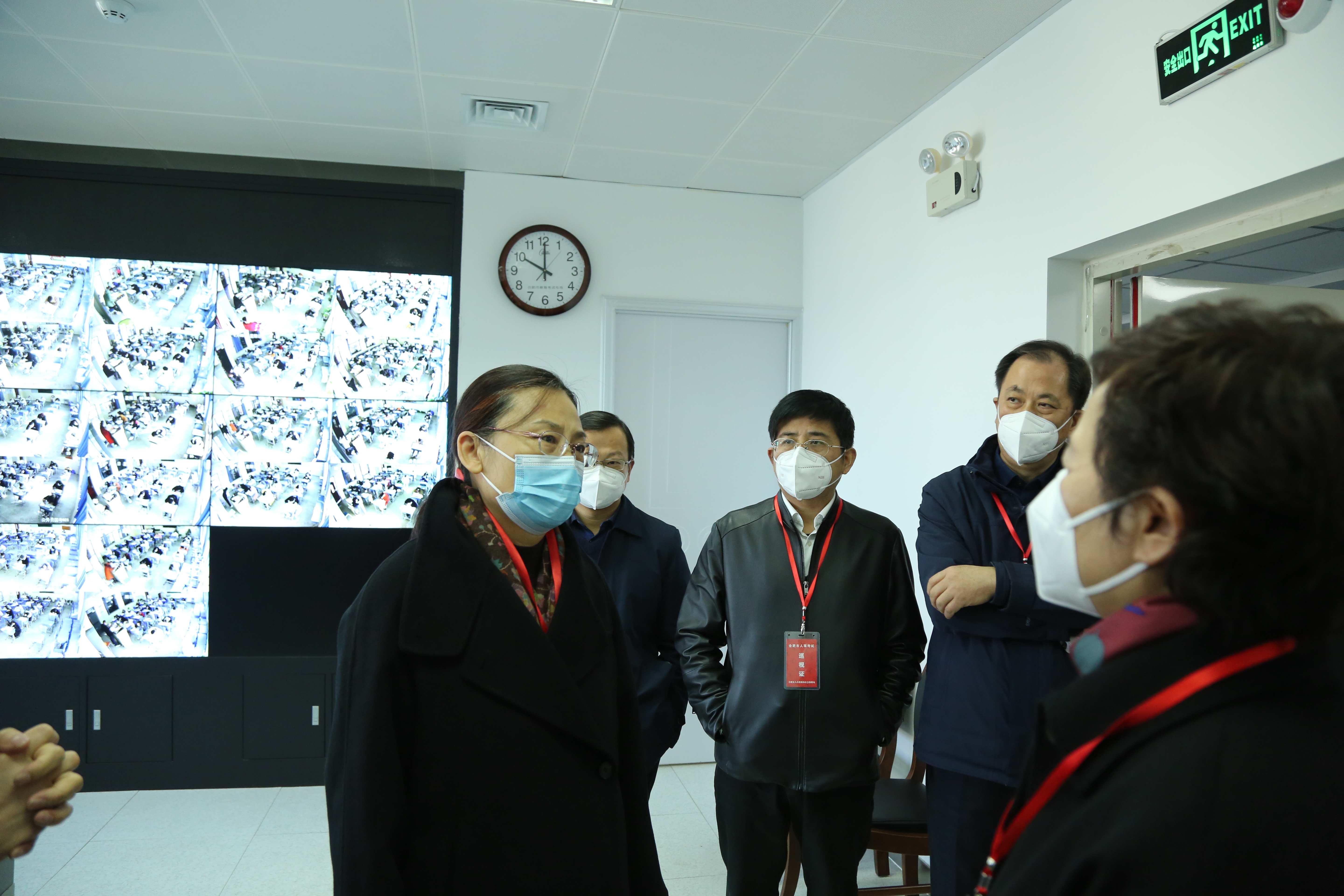 1月8日上午,安徽省人力资源和社会保障厅党组书记、厅长王炜亲自带队来到四中开展巡考工作。省委组织部市县干部处处长李兆平、省委组织部公务员考录培训处处长周叔利、省人事考试院院长何畏、市委组织部部长葛建荣、市委组织部常务副部长郭世碧、市人社局局长张旭生、市教育局局长刘业勋、市卫健委主任张晓峰、市委组织部副部长谢超、合肥市人事考试中心主任童春鸿等多位省市级相关部门领导陪同巡考。