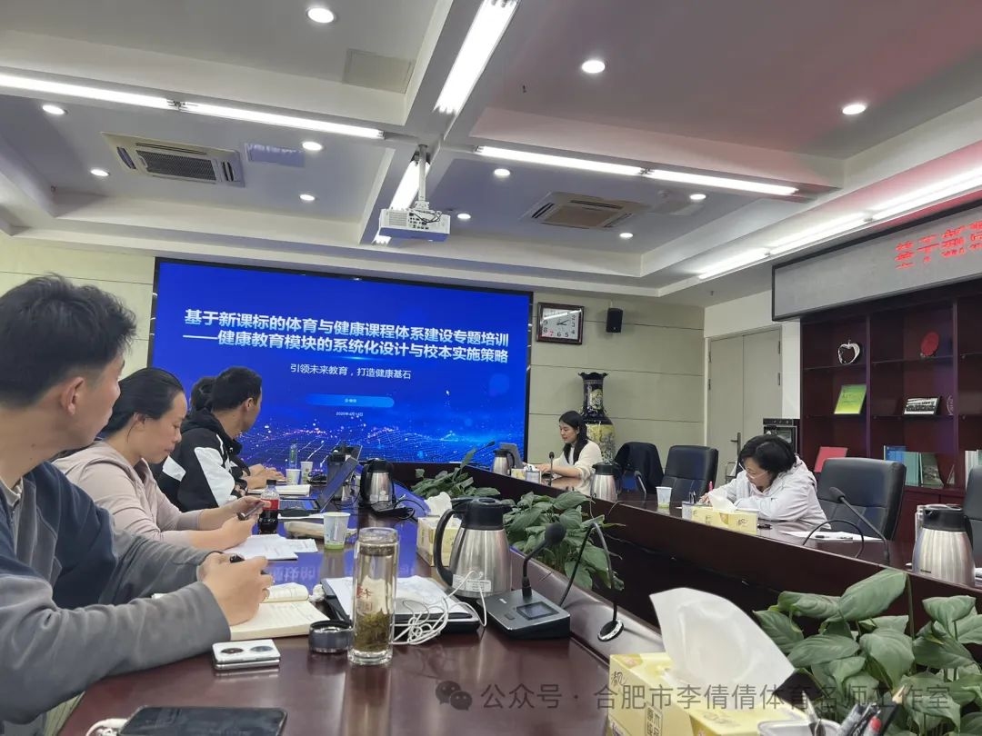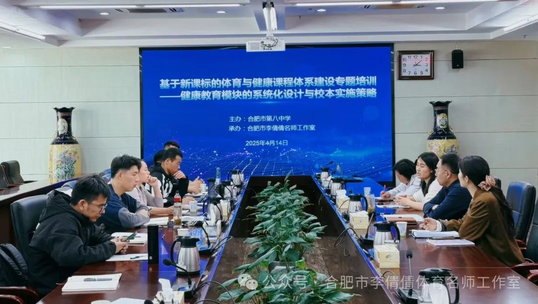 为深入贯彻落实《普通高中体育与健康课程标准(2020年修订)》及“健康中国2030”战略要求,全面推进核心素养导向的课程改革,2025 年 4 月 14 日下午,合肥四中葛未未老师在合肥八中行政楼 7 楼会议室参加了基于新课标的体育与健康课程体系建设专题培训“健康教育模块的系统化设计与校本实施策略”启动会。会议旨在聚焦新课标背景下体育与健康课程体系的深化建设,尤其针对健康教育模块的系统化设计与校本实施策略展开专题研讨。会议由合肥市李倩倩名师工作室举办,安徽省教育科学研究院体育教研员吴桥合肥八中分管副校长蒋信伟、合肥师范学院体育教师胡蜜、合肥金斗路小学王李萍老师受邀参加了本次会议,合肥市李倩倩名师工作室成员参加了本次会议。