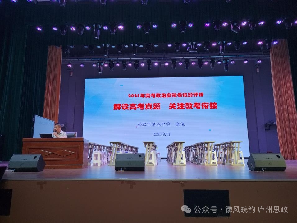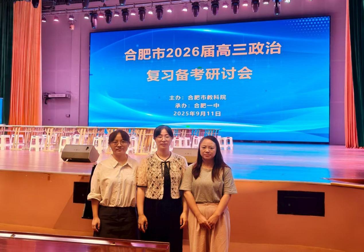 9月11日上午,合肥市2026届高三政治复习备考研讨会在合肥市第一中学举行。会议主要内容包括合肥一中徐秀红老师的一轮复习教学示范课、合肥六中刘义堂老师的评课与复习建议、合肥八中崔俊老师的2025安徽卷真题分析与备考指导,以及合肥一六八中学黄婷老师的一轮复习策略分享。我校高三政治学科备课组全体教师全程参加此次会议,认真学习、总结反思。