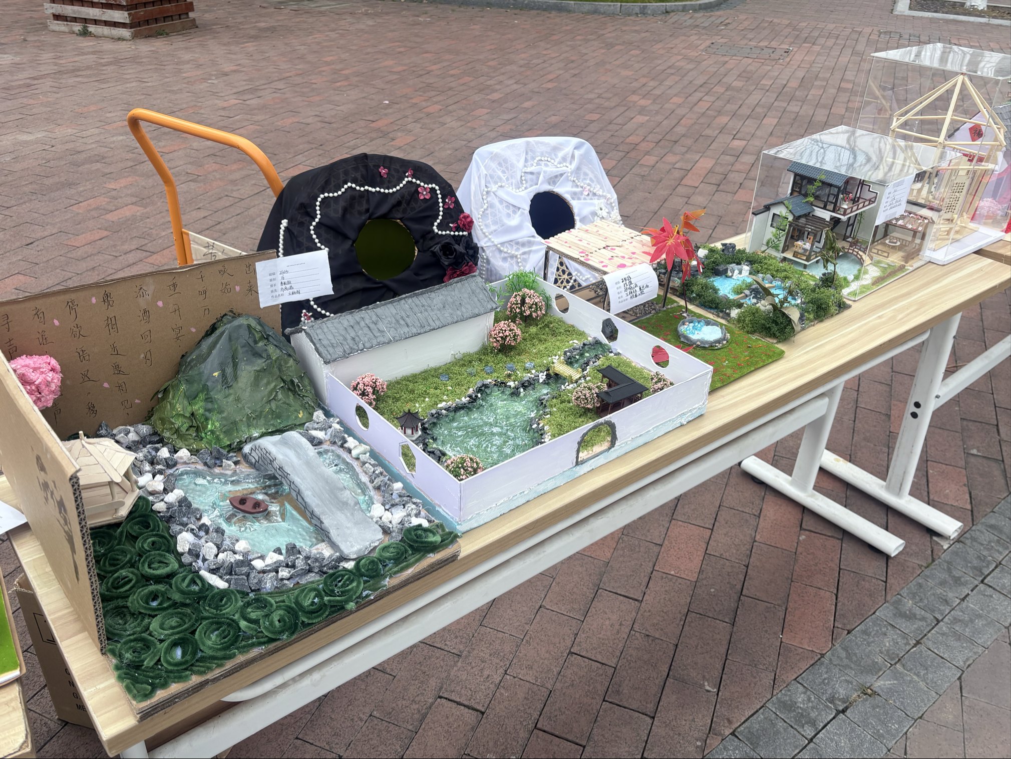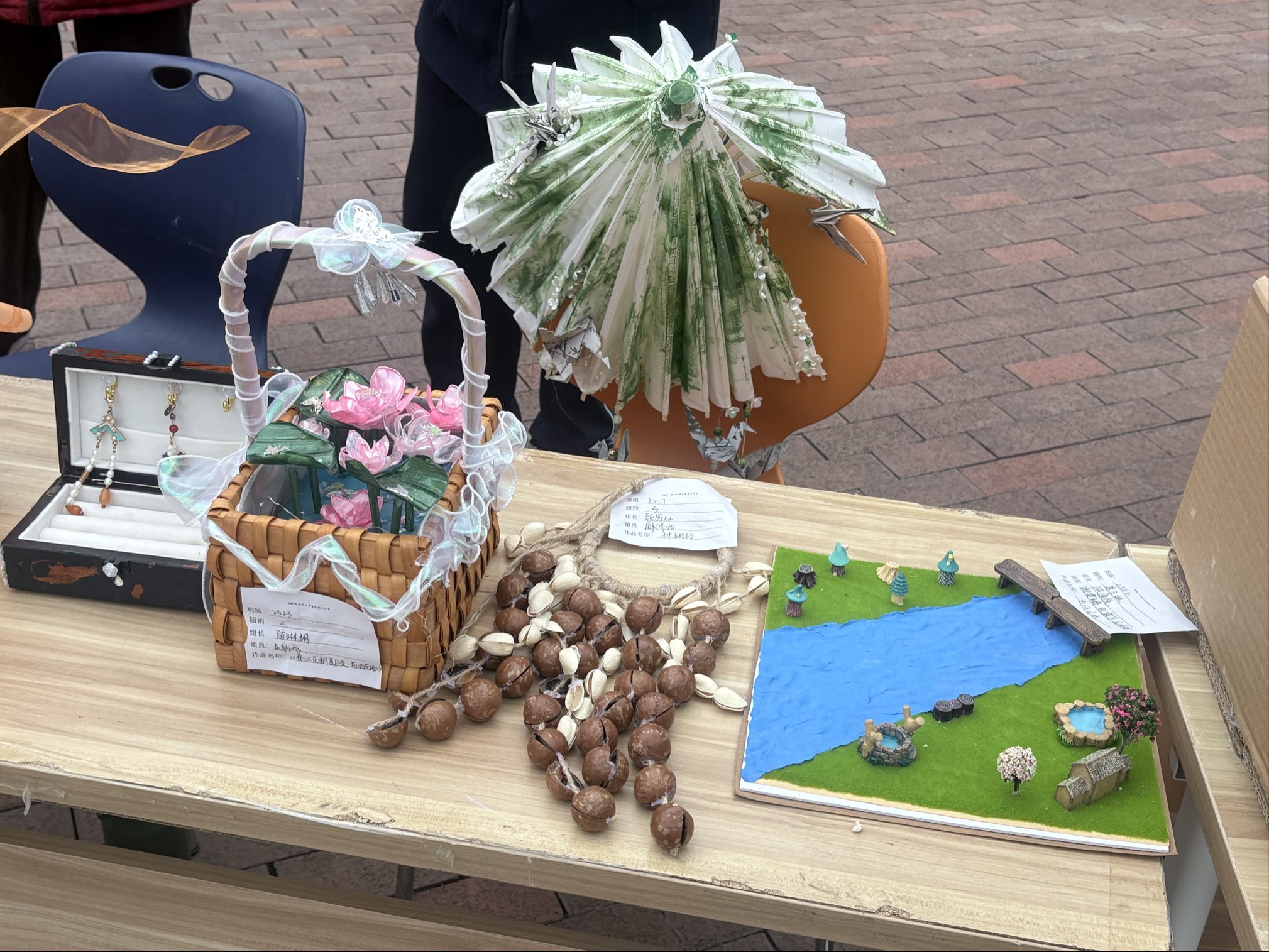 漫步于校园小径,左侧展区宛如一座传统文化的宝藏库,承载着薪火绵延的文化根脉。同学们以木为纸、以技为笔,将榫卯、扎染、非遗手作等传统技艺的匠心巧妙融入作品之中。每一道细腻的纹路,都仿佛是时光的刻痕,镌刻着中华优秀传统文化的深厚智慧;每一件独具匠心的造物,都宛如文化的使者,承载着青年学子对文明传承的赤诚之心。在这里,传统技艺不再是书本上的文字,而是鲜活地呈现在眼前,让观者近距离感受传统文化的独特魅力。