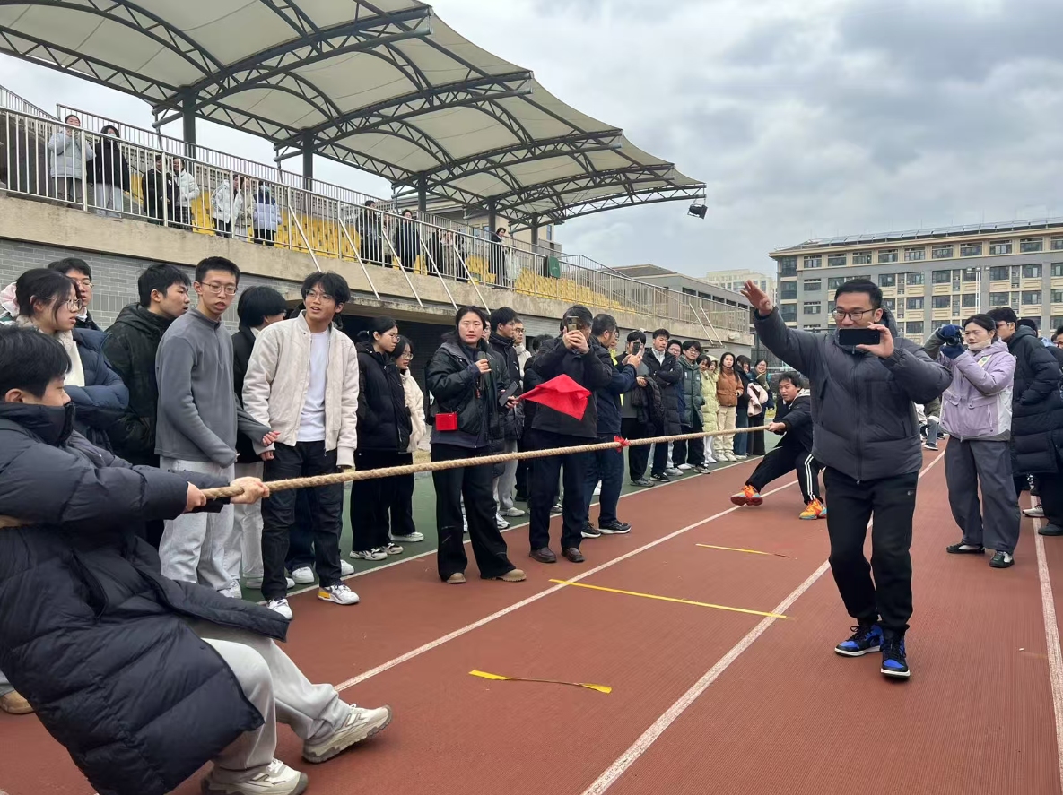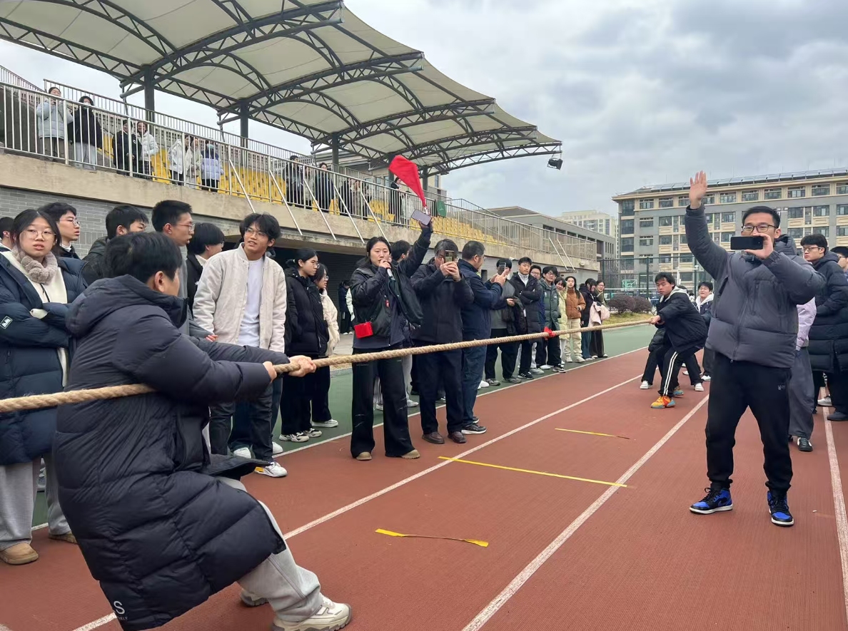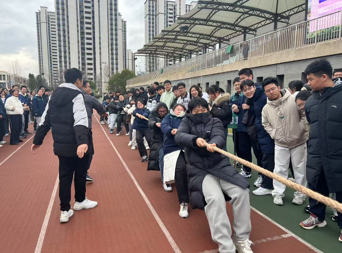 为了营造一个积极、健康、朝气蓬勃的校园环境,增强高三年级同学们班级凝聚力,2025年12月30、31日大课间,合肥四中高三年级部在操场举行了“2025年合肥四中高三年级迎新拔河比赛”活动。本次活动具体由体育学科组组织,来自高三年级24个班级参与了本次活动。活动现场吸引了无数学生围观、呐喊、加油,合肥四中党委书记熊荣领、校长毛晓斌、高三年级部主任何飞等领导老师也来到现场给比赛班级呐喊加油。