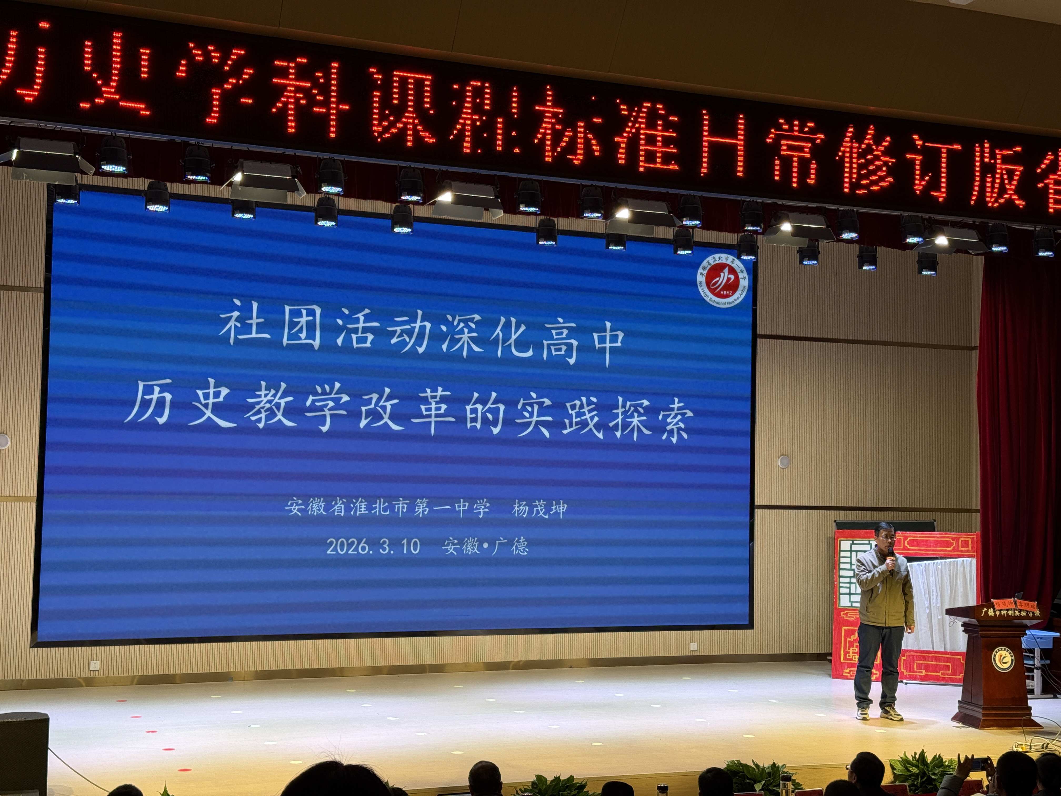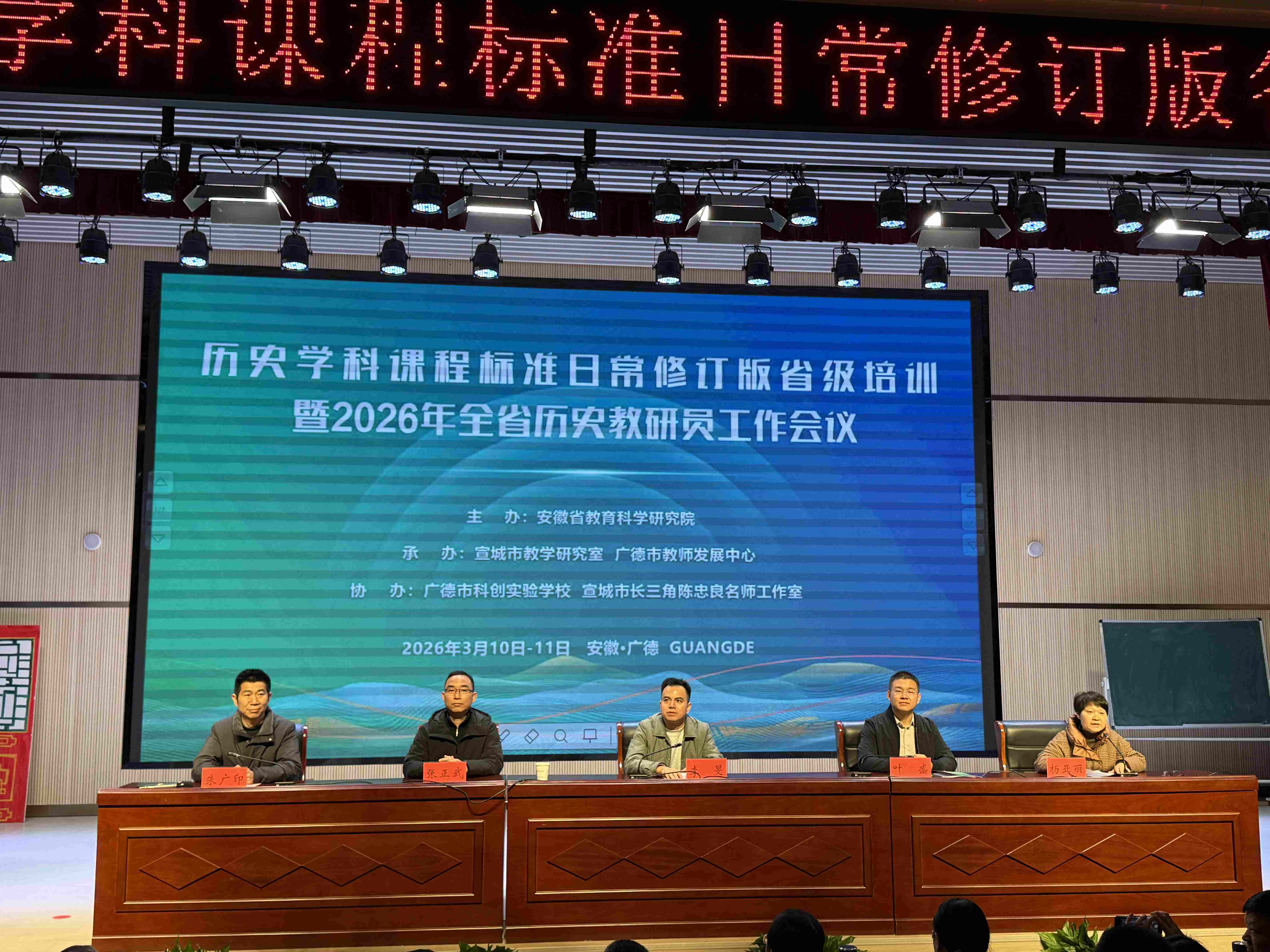 为深入贯彻《教育部教材局关于组织开展中小学课程方案和课程标准日常修订版国家级示范培训的通知》精神,全面落实2025年修订版课程标准对中学历史教学的指导要求,2026年3月10日,由安徽省教育科学研究院主办的历史学科课程标准日常修订版省级培训暨2026年全省历史教研员工作会议在广德市科创实验学校正式开班。来自全省各市、省直管县的历史教研员及普通高中历史骨干教师共300余人参加本次培训,合肥四中高一历史组教研组长余依琳参与本次学习。